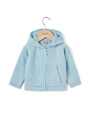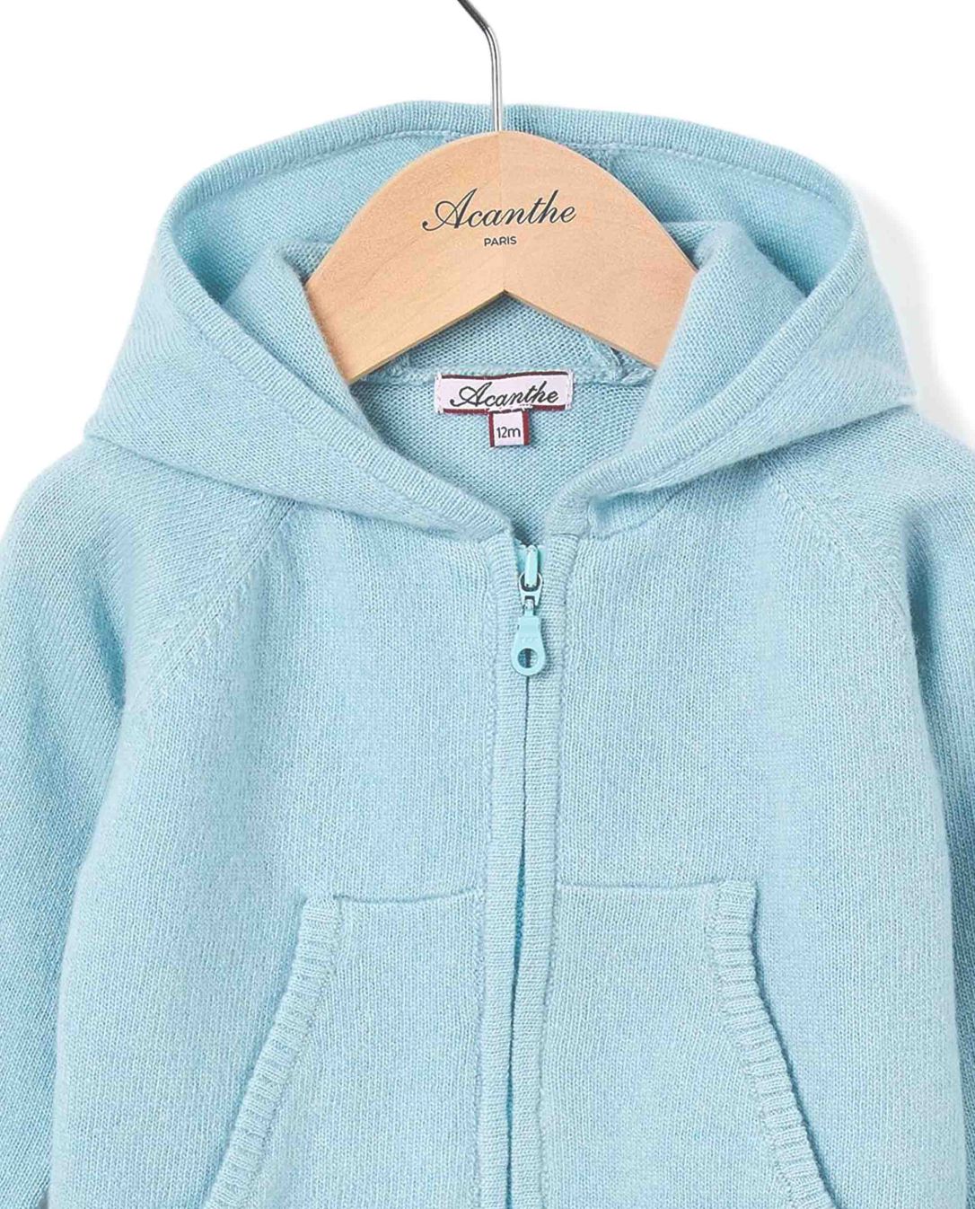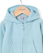Cardigan zippé à capuche, en laine et cachemire. Maille jersey.
