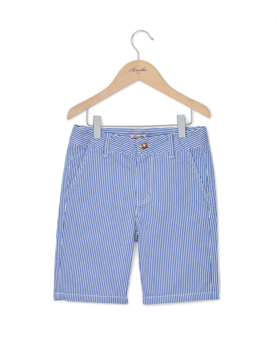 Bermuda twill rayé. Taille ajustable de l'intérieur par un élastique réglable. Poches italiennes devant.