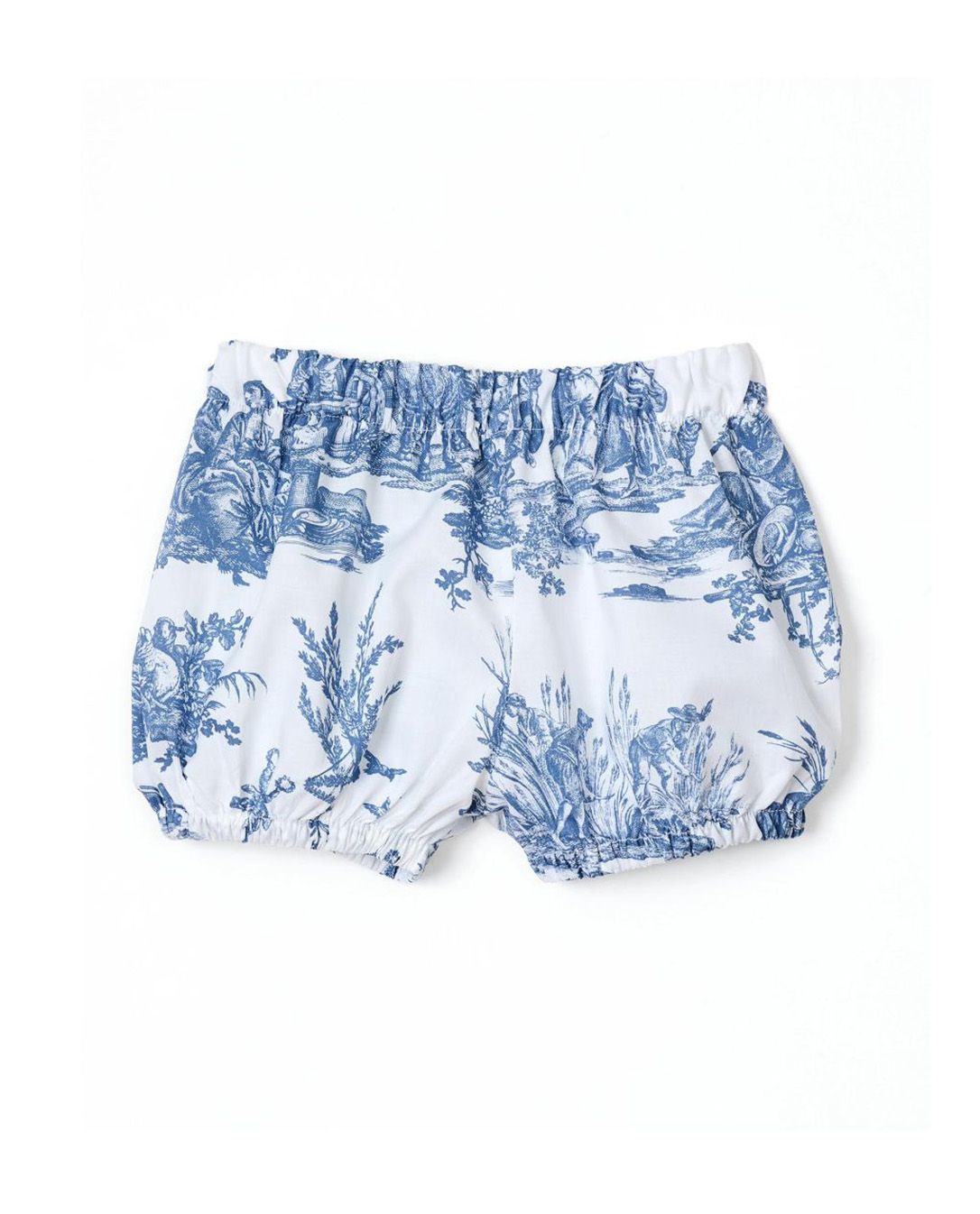 Culotte bouffante en seersucker. Taille et bas de jambe élastiqués.100% coton. Motif TOILE DE JOUY depuis 1760® : Les délices des quatre saisons, Inv. 009.1.2.1. Manufacture Oberkampf, Musée de la Toile de Jouy.