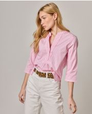 Blouse encolure V croisée. Manches 7/8. Décolleté V croisé. Popeline coton. Longueur totale 65 cm toutes tailles. Le mannequin mesure 1,73m et porte une taille 1.