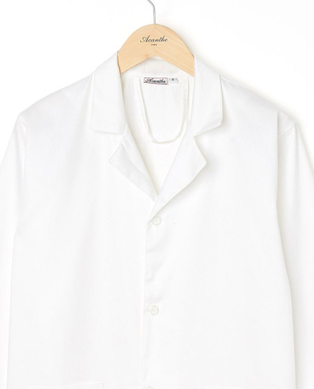Blouse mixte col tailleur, 2 poches plaquees, boutonnage milieu devant.