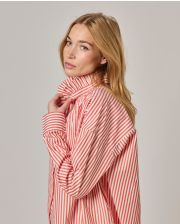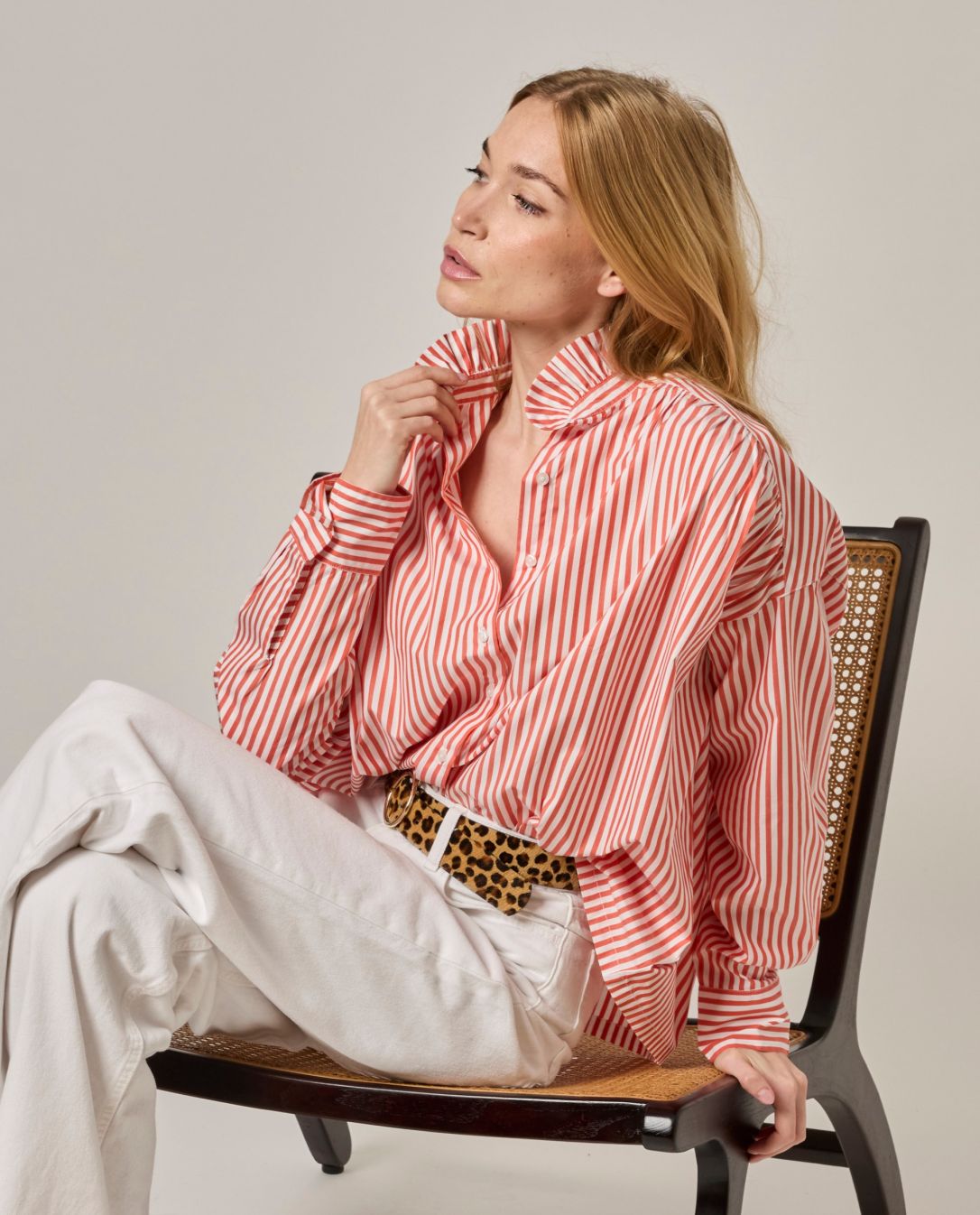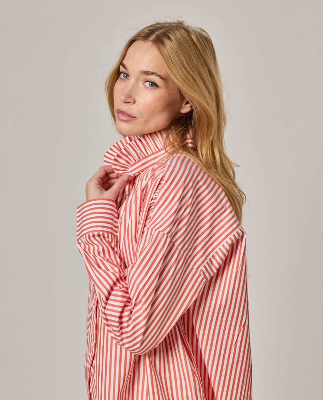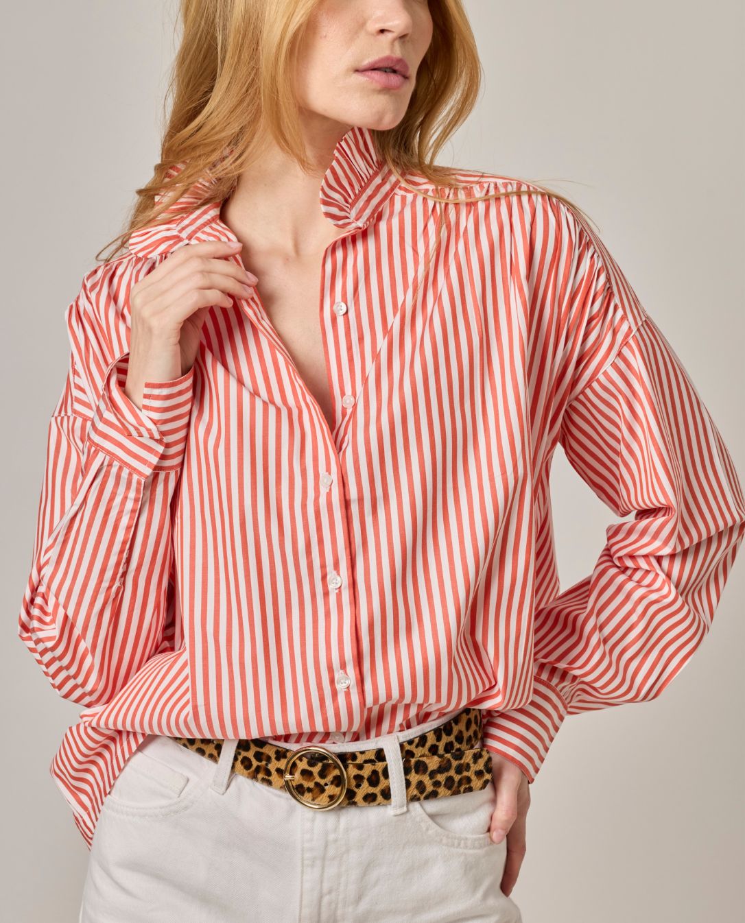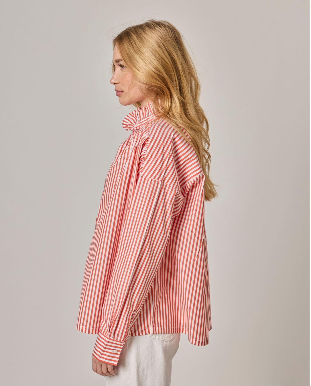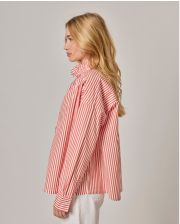 Blouse loose.Col volanté corolle. Epaules tombantes. Popeline coton. Taille unique. Longueur totale 67 cm. Le mannequin mesure 1,73m et porte une taille unique.