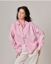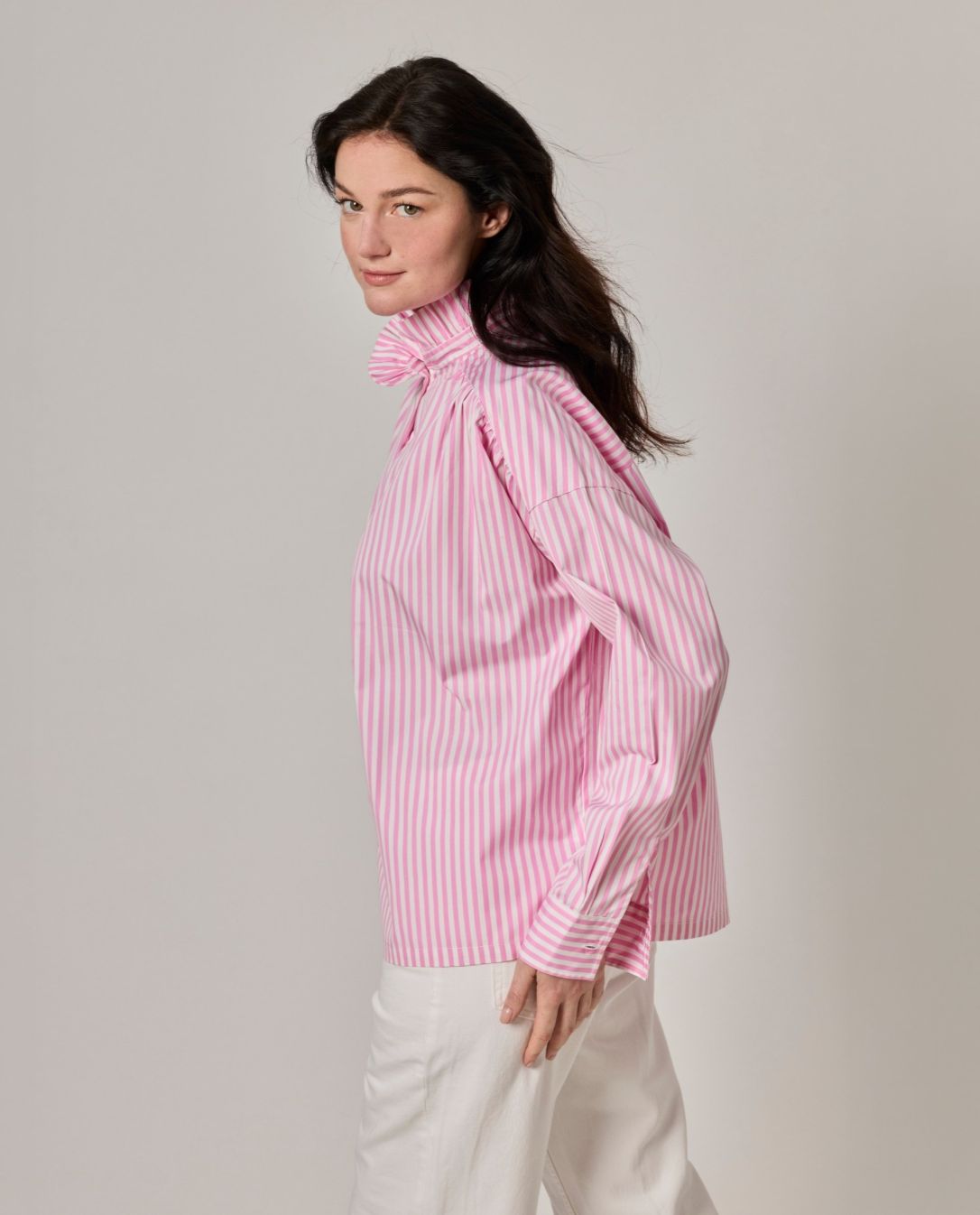Blouse loose.Col volanté corolle. Epaules tombantes. Popeline coton. Taille unique. Longueur totale 67 cm. Le mannequin mesure 1,77m et porte une taille unique.