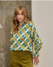 Chemisier col rond. Manches longues et larges se terminant par des poignets smockés volantés. 100% coton. Longueur depuis l'épaule pour une taille 1 : 70 cm.Le mannequin mesure 1m73 et porte du T1.