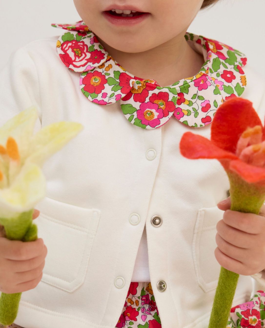Body blanc col pétale en tissu Liberty Betsy blanc/Liberty Betsy