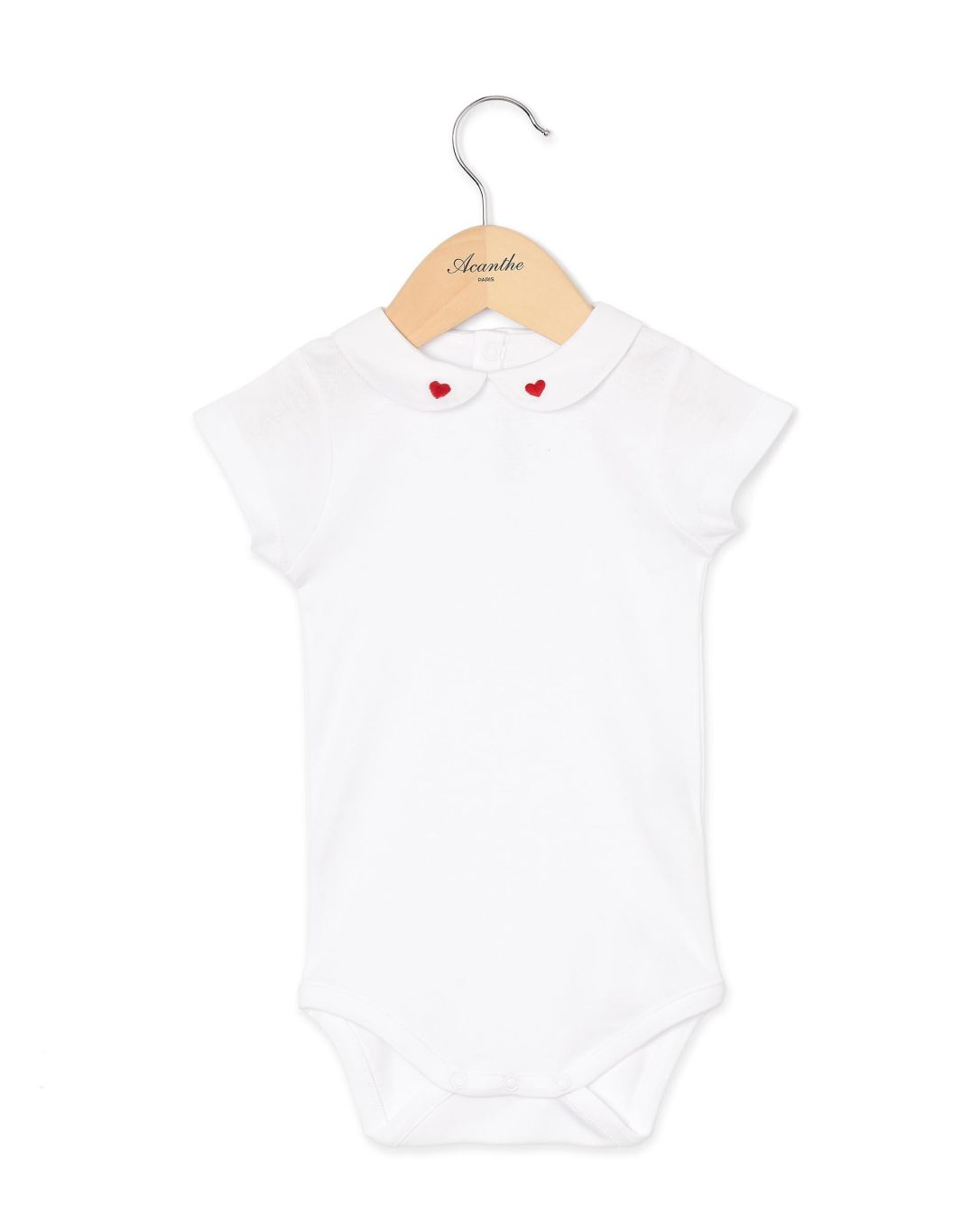 Body manches courtes. Boutons pression à l'entrejambe. Col rond en popeline avec broderie coeur rouge .100% coton.