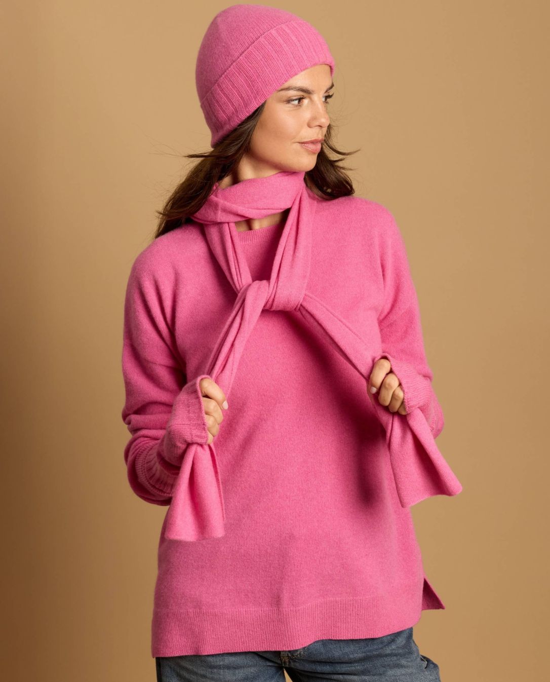 Bonnet en cachemire double fil. Large revers. Taille unique.