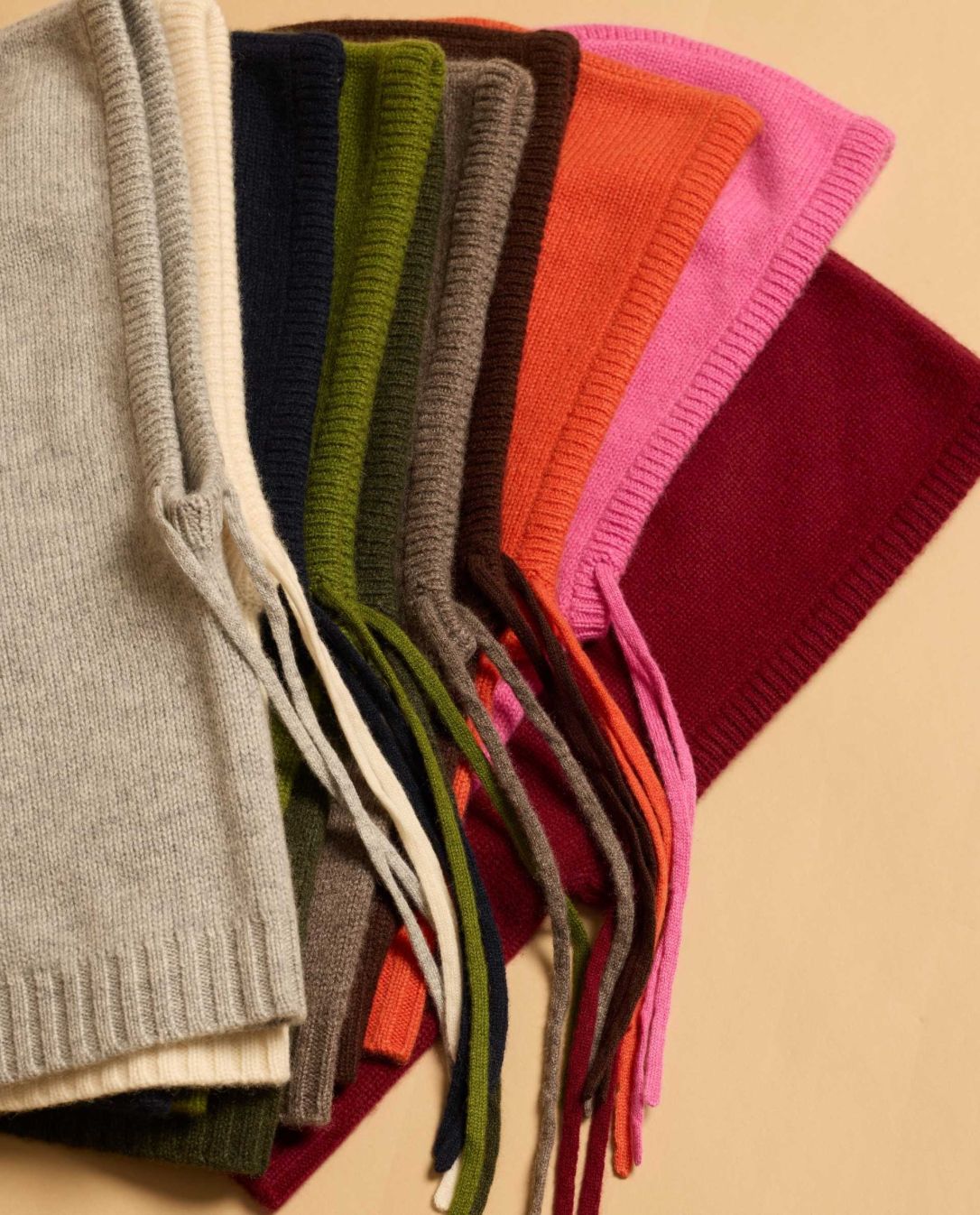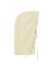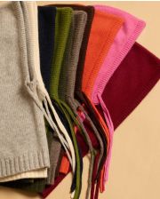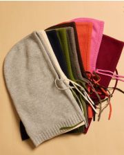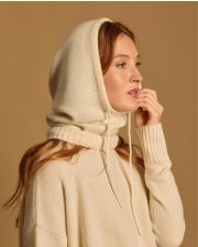 Cagoule en cachemire double fil. Taille unique. Finition bord côtes. Ajustable avec les cordons de serrage.