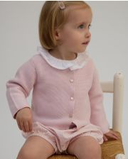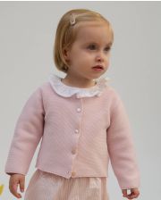 Cardigan point mousse rose pâle