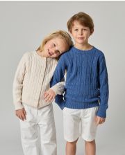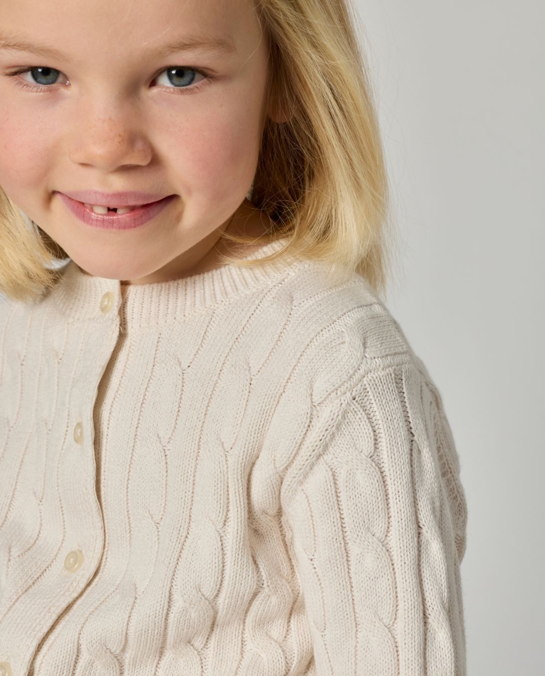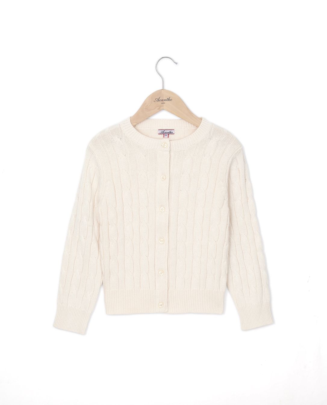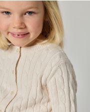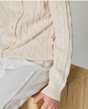 Cardigan torsades coton. Encolure ronde. Torsades devant et dos. Boutonnage devant. Finitions bord côtes.