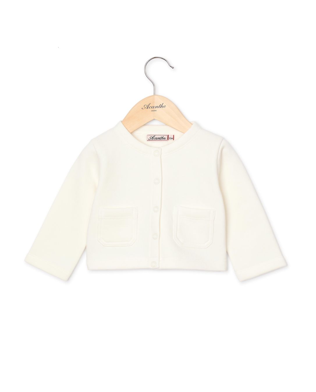 Cardigan bébé en molleton. Encolure ronde. Manches longues. Boutons pression au devant. 80% coton - 20% polyester.