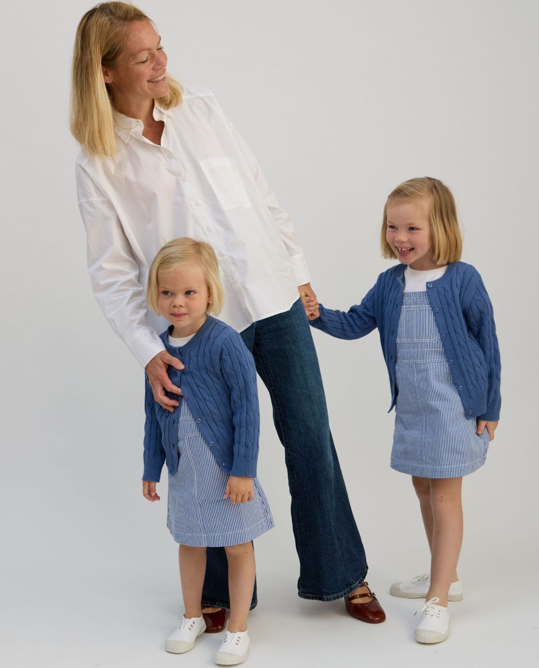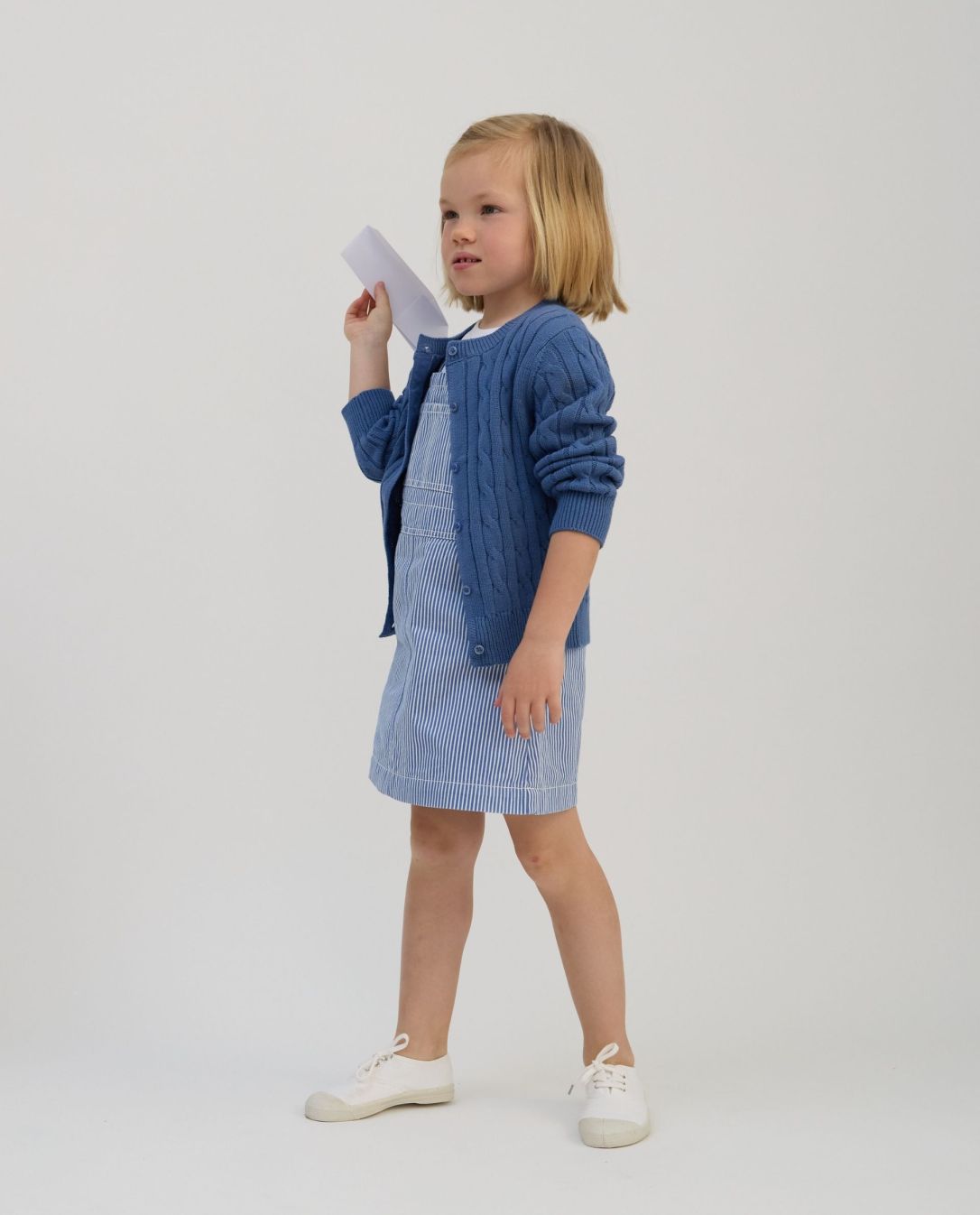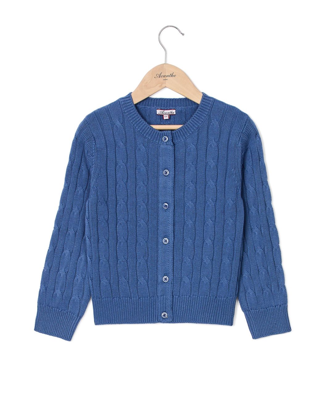 Encolure ronde. Torsades devant et dos. Boutonnage devant. Finitions bord côtes. 100% coton.