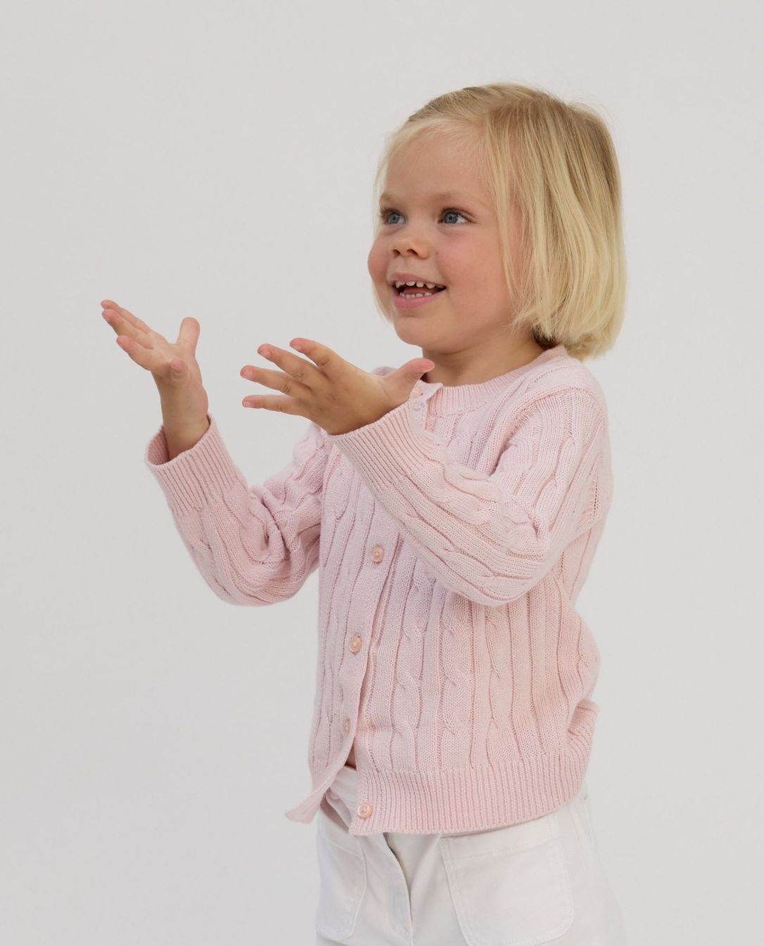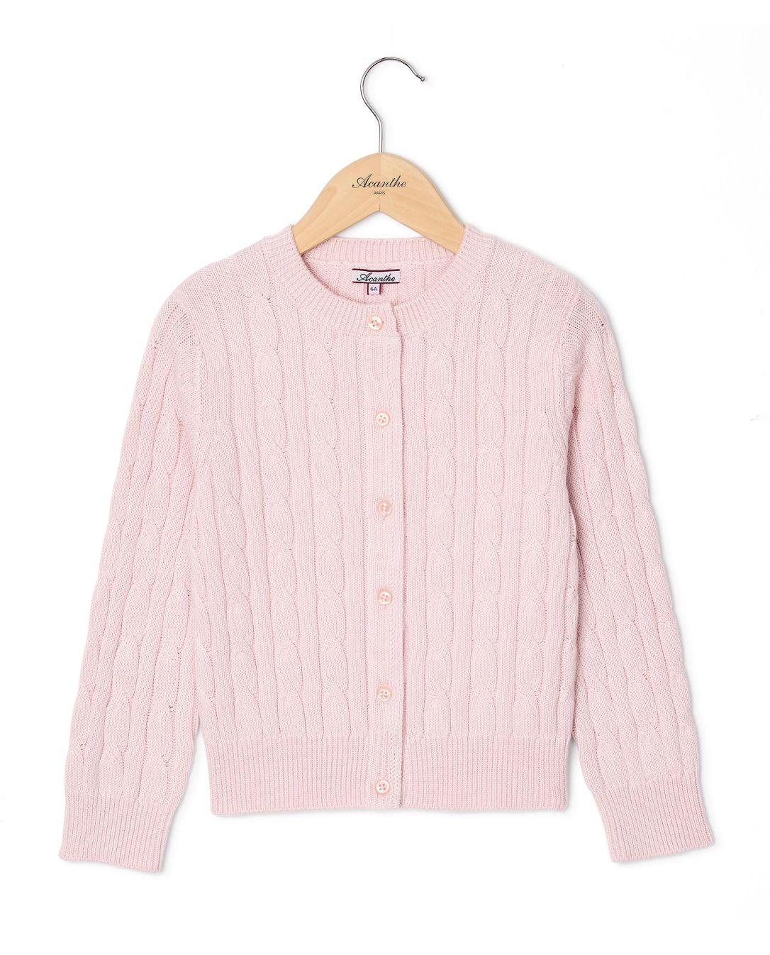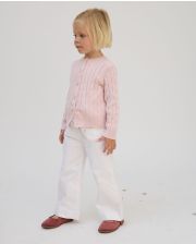 Cardigan torsades coton rose pâle