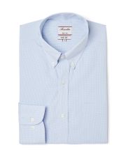 Coupe ajustée. Poche poitrine. 1 pli rond carrure dos. Pans arrondis au bas.