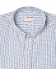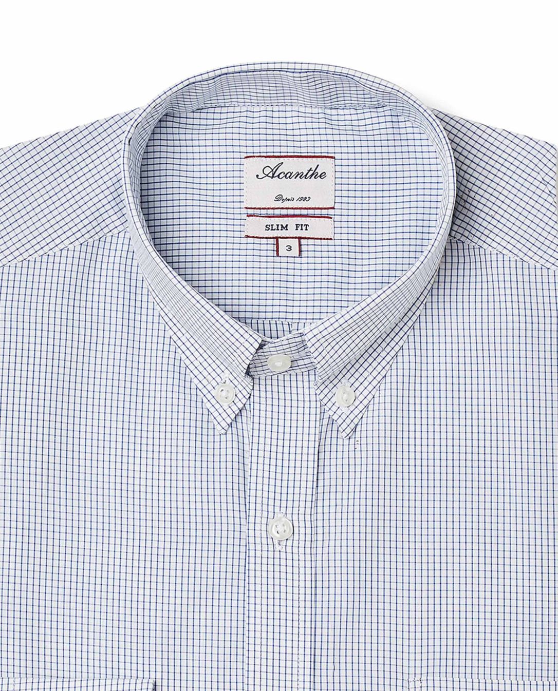 Coupe ajustée. Poche poitrine. 1 pli rond carrure dos. Pans arrondis au bas.