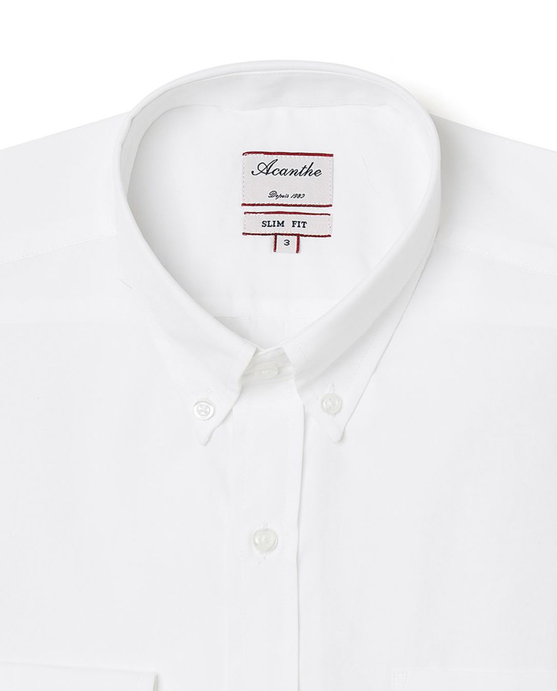 Coupe ajustée. Poche poitrine. 1 pli rond carrure dos. Pans arrondis au bas.