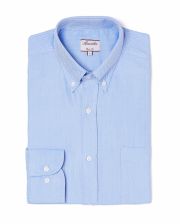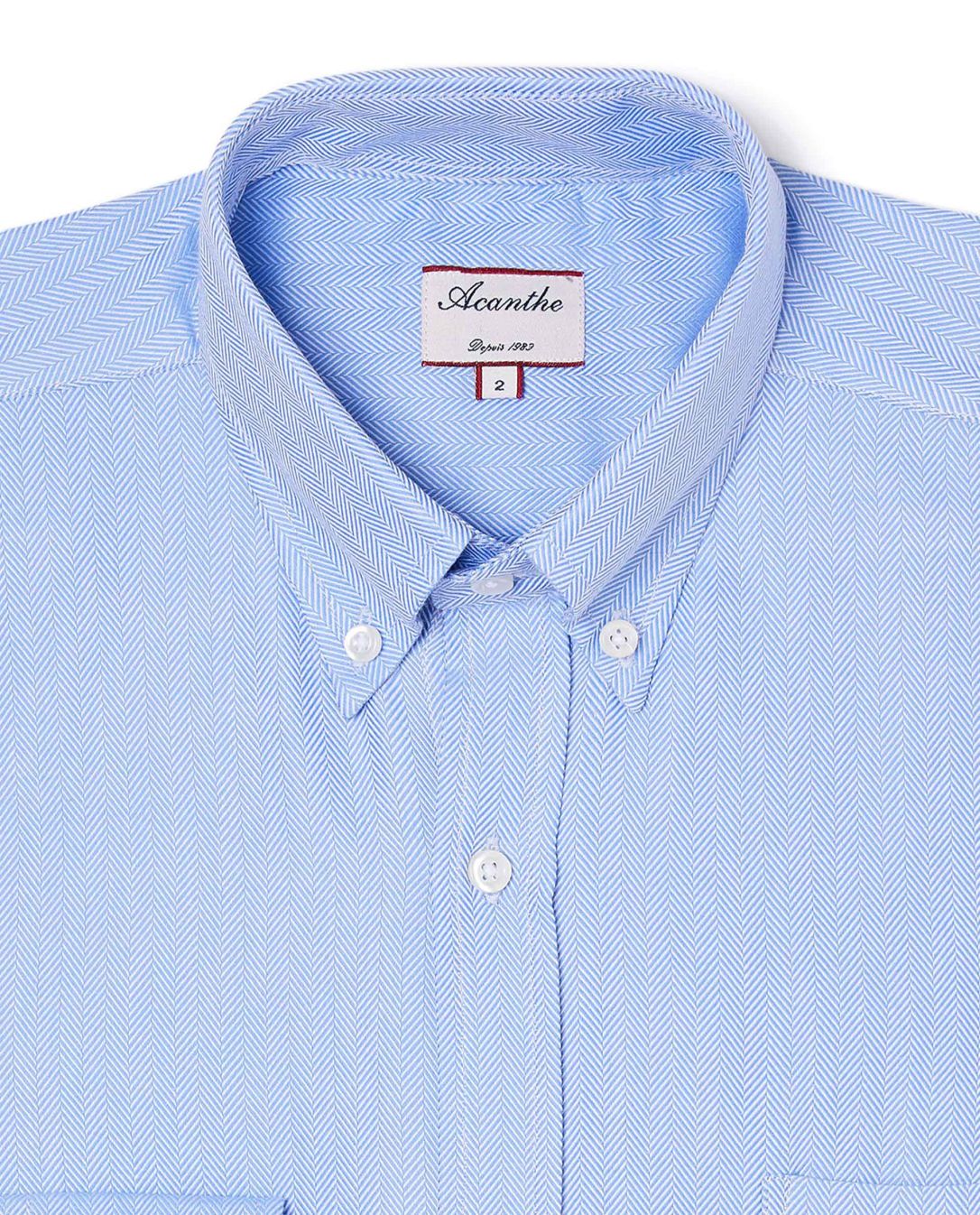 Chemise col boutonné. Manches longues. Poche poitrine. Pans arrondis au bas.