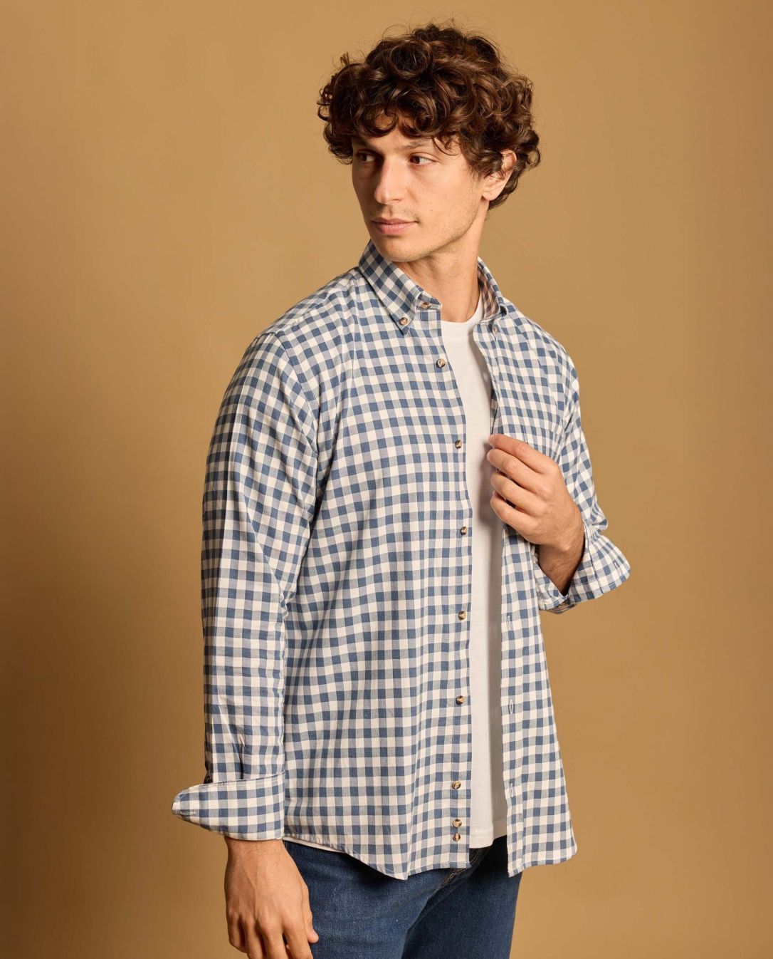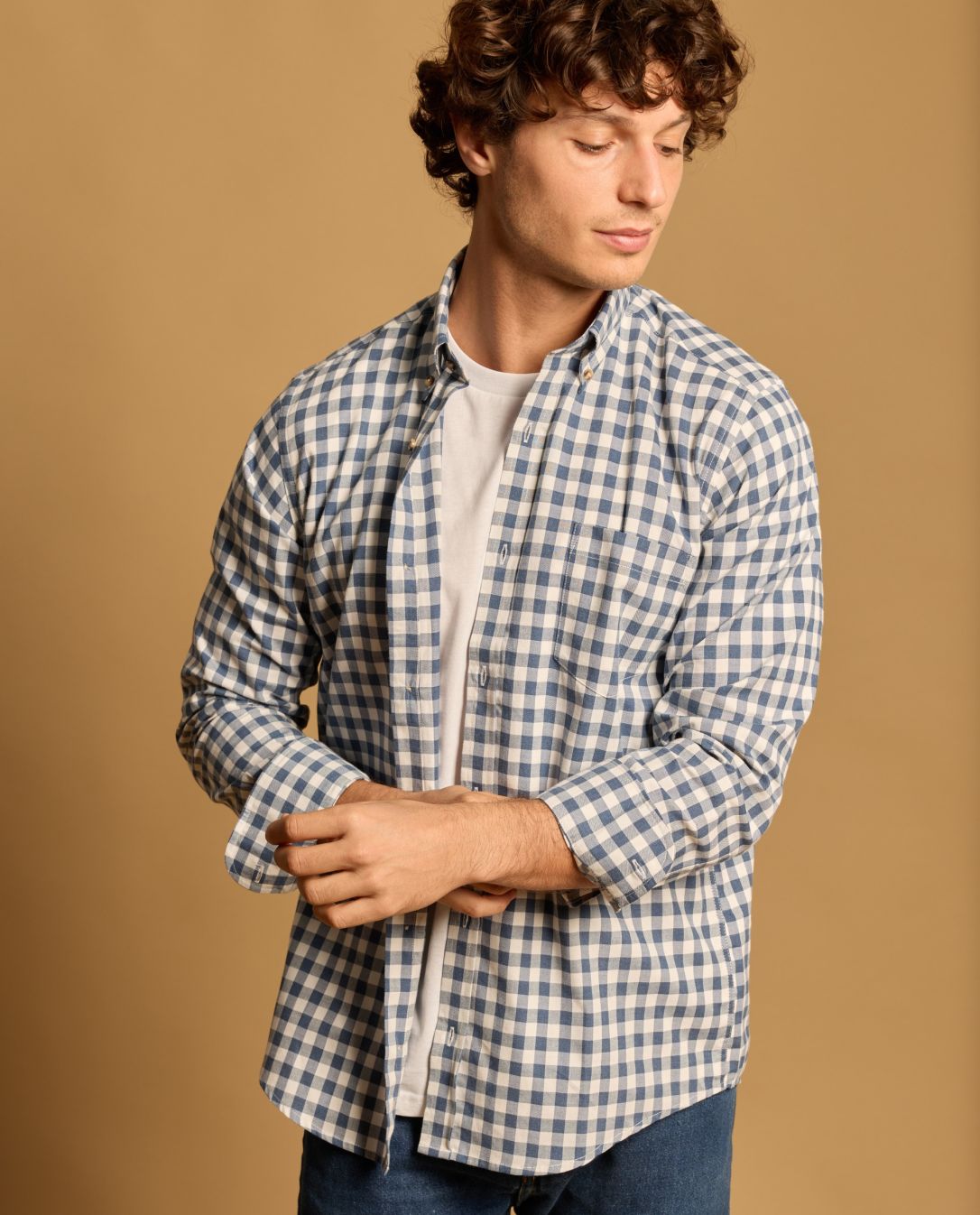 Chemise homme col boutonné. Coupe regular. Poche poitrine. 1 pli rond carrure dos. Pans arrondis au bas.