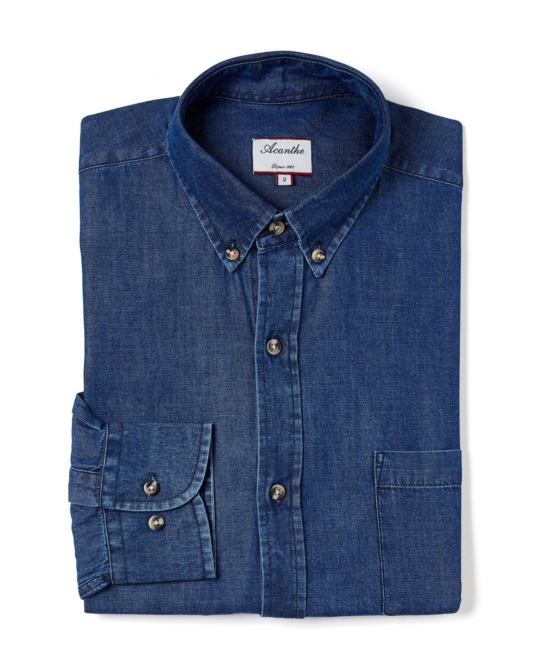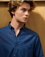 Chemise homme col boutonné. Coupe regular. Poche poitrine. 1 pli rond carrure dos. Pans arrondis au bas. Le mannequin mesure 1m90 et porte une taille 4. 100% coton.