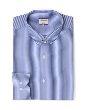 chemise col boutonné coton large rayure bleue