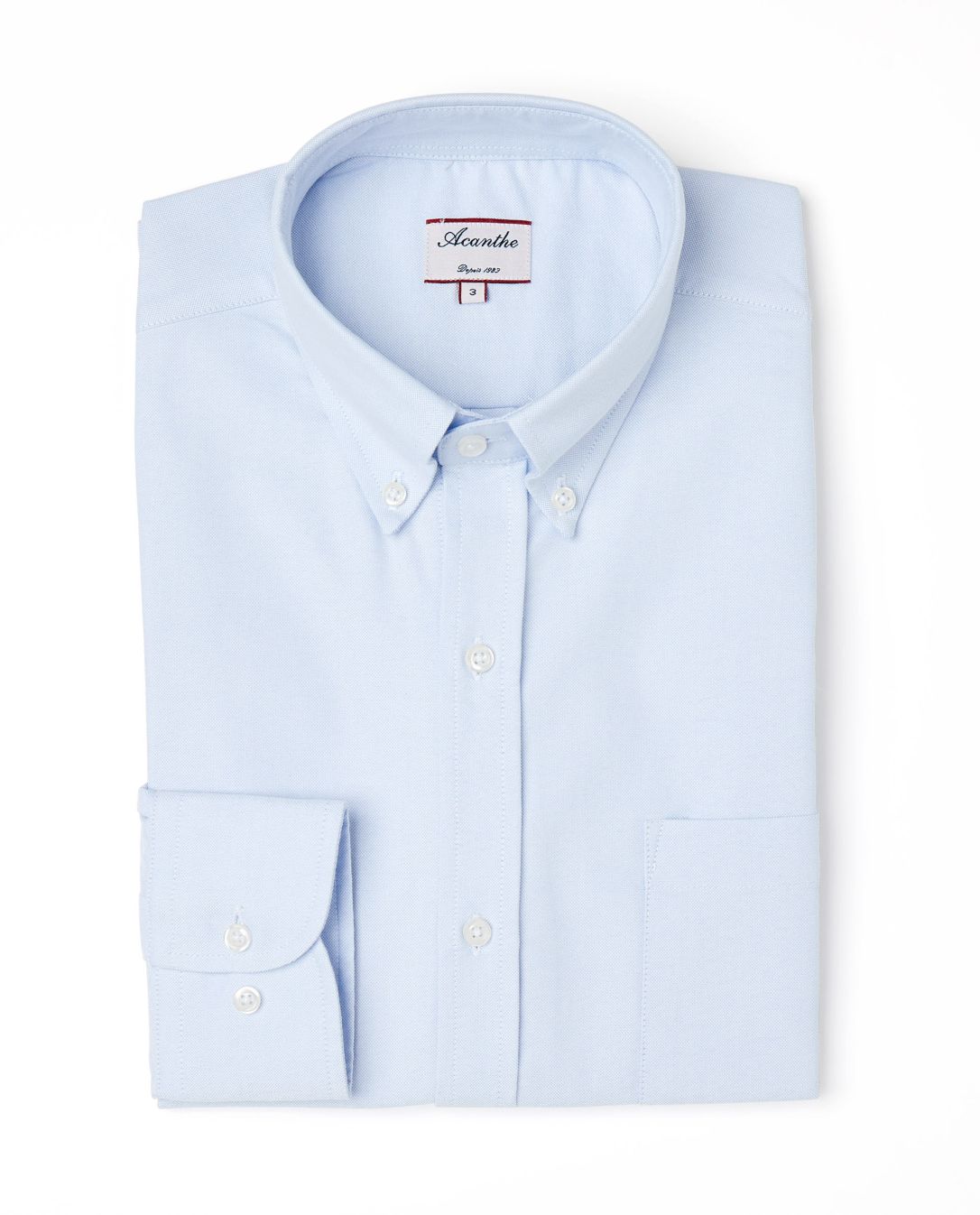 Chemise col boutonné. Manches longues. Poche poitrine. 1 pli rond carrure dos. Pans arrondis au bas.
