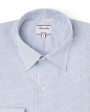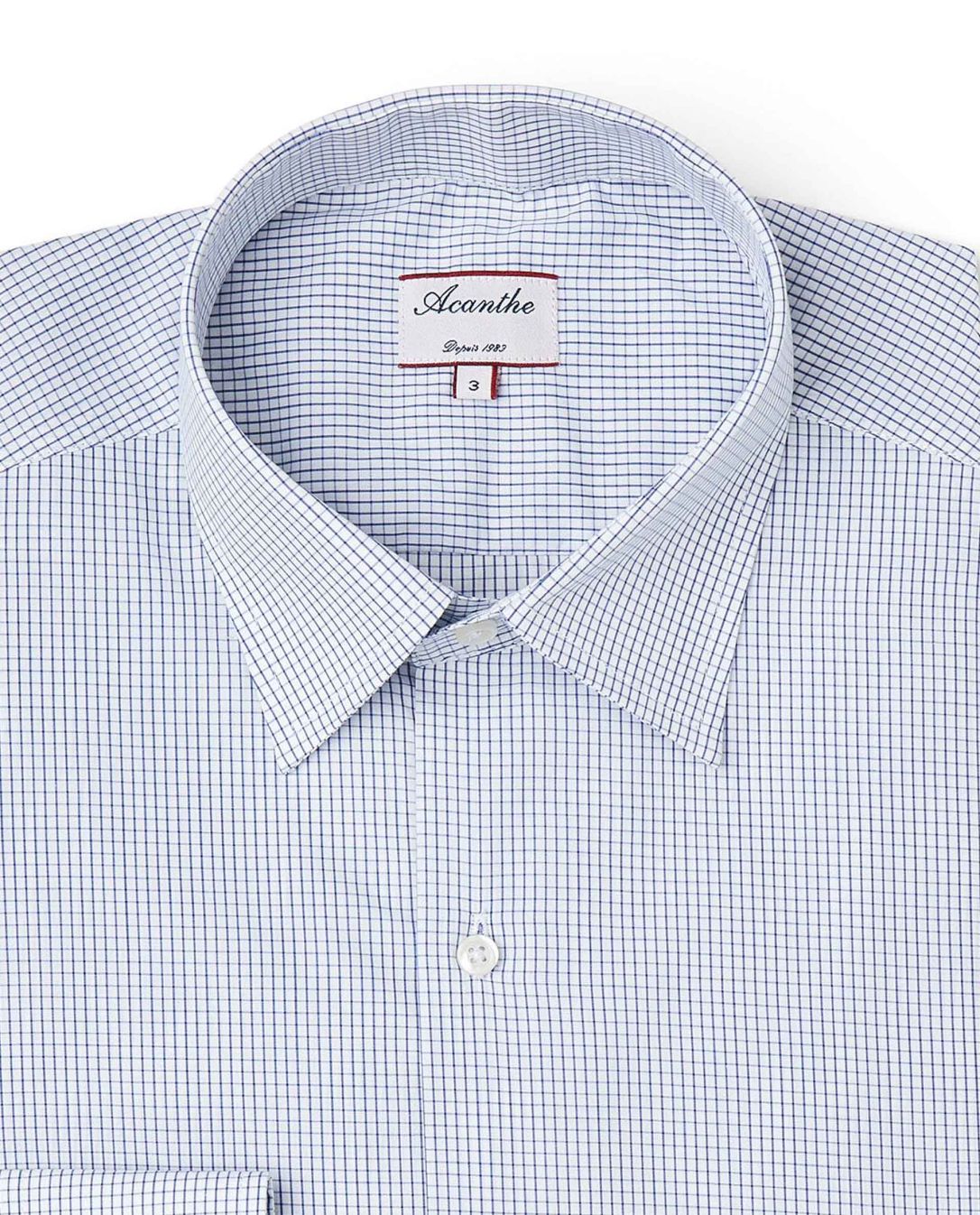 Chemise col italien. Manches longues. 2 plis souples carrure dos. Pans arrondis au bas.