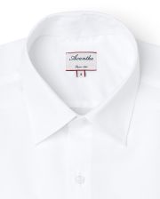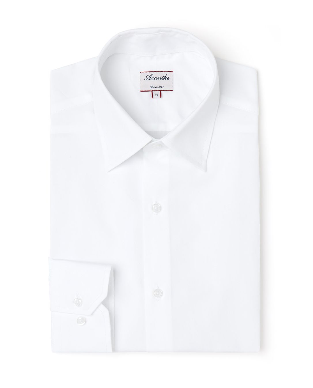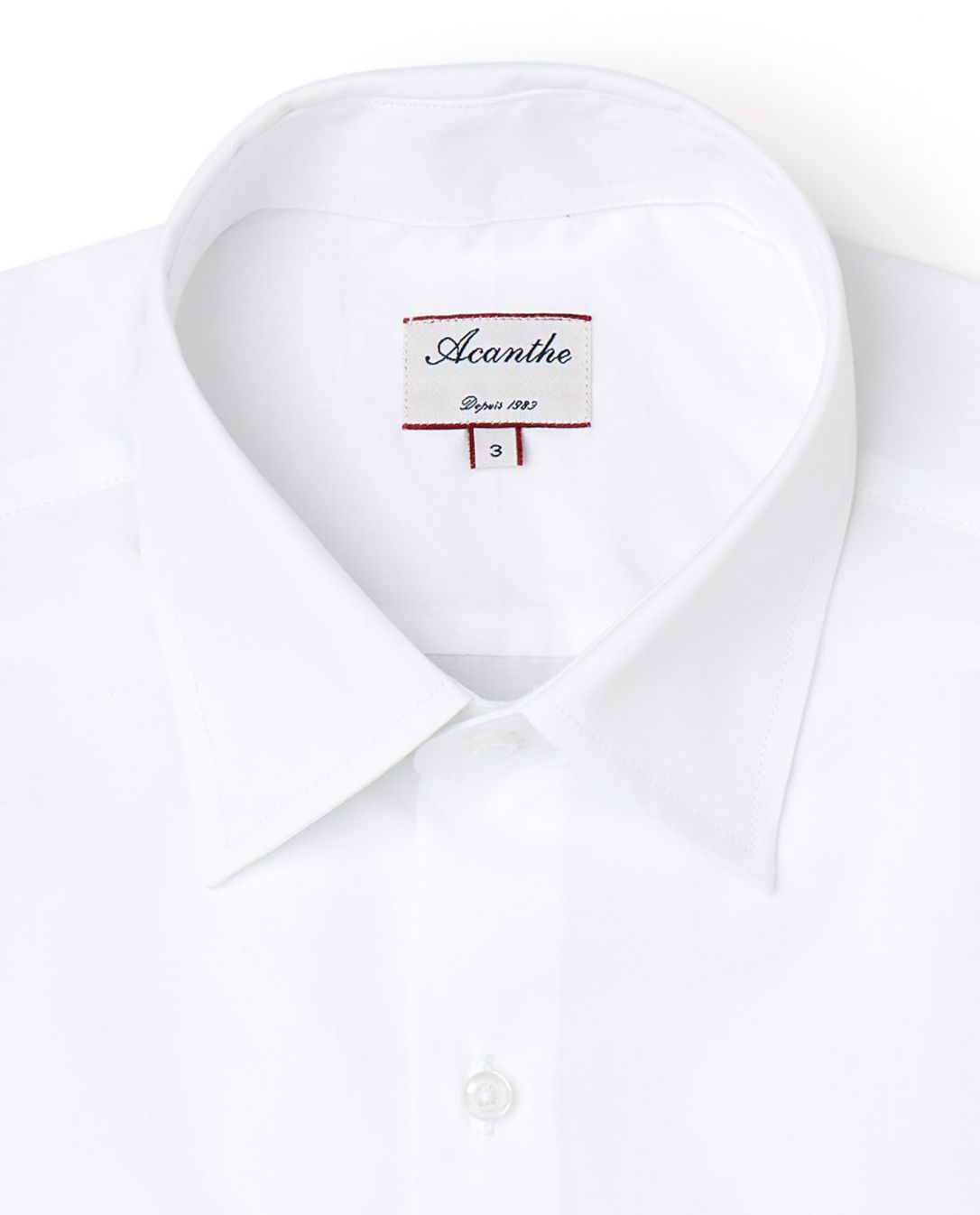 Chemise col italien. Manches longues. 2 plis souples carrure dos. Pans arrondis au bas.