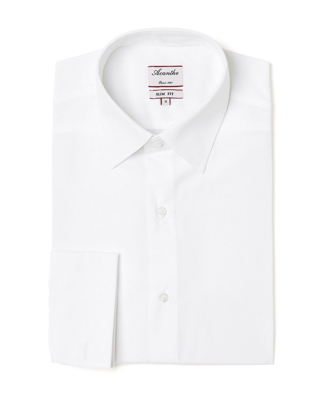 Chemise ajustée col italien poignet mousquetaire popeline blanche