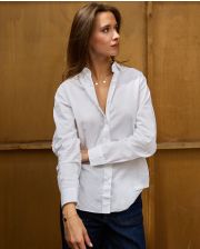 Chemisier classique, manches longues . Pli rond au dos. Popeline coton. Le mannequin mesure 1,75m et porte une taille 1.