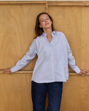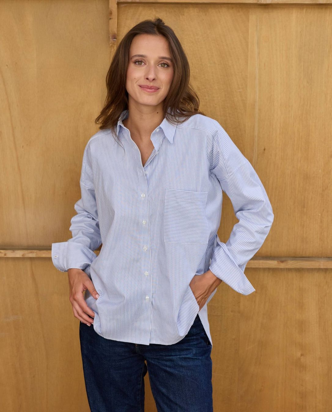 Chemisier manches longues oversize. Epaules tombantes. Pli creux au dos. Popeline coton. Taille unique.