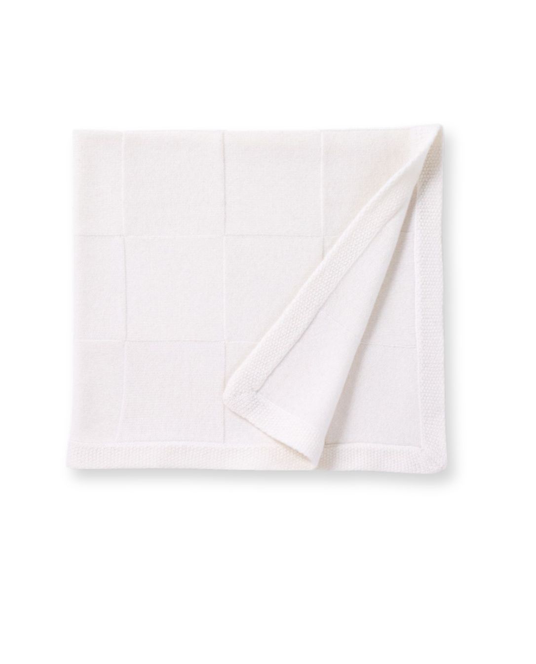Couverture bébé en laine et cachemire, faite de carrés alternés de différentes mailles. Dimension 71x82 cm.