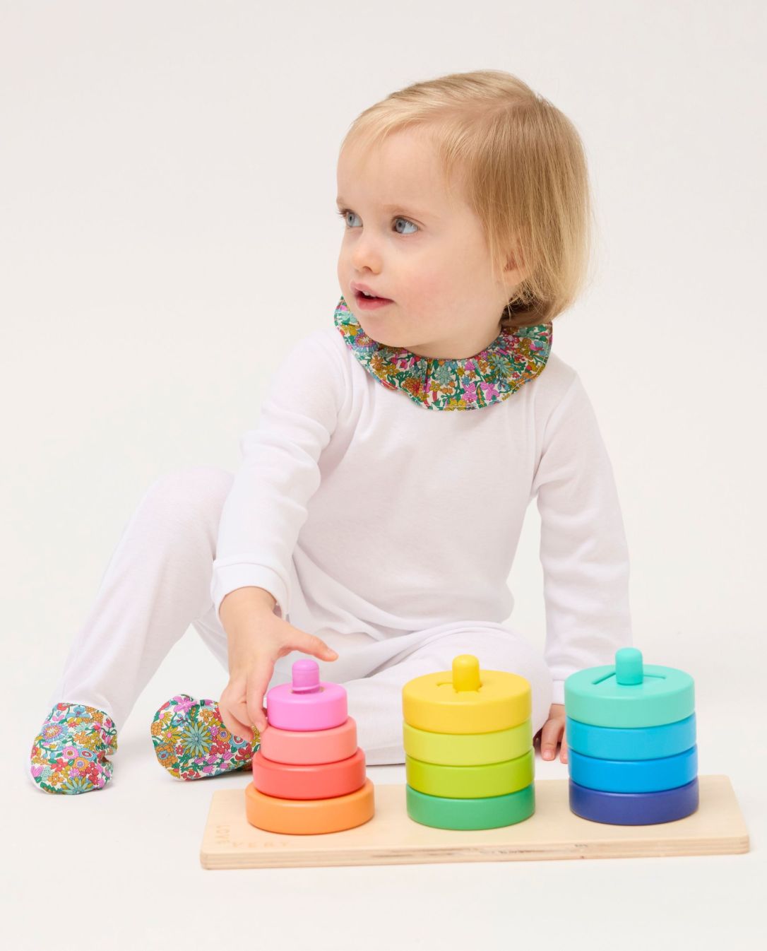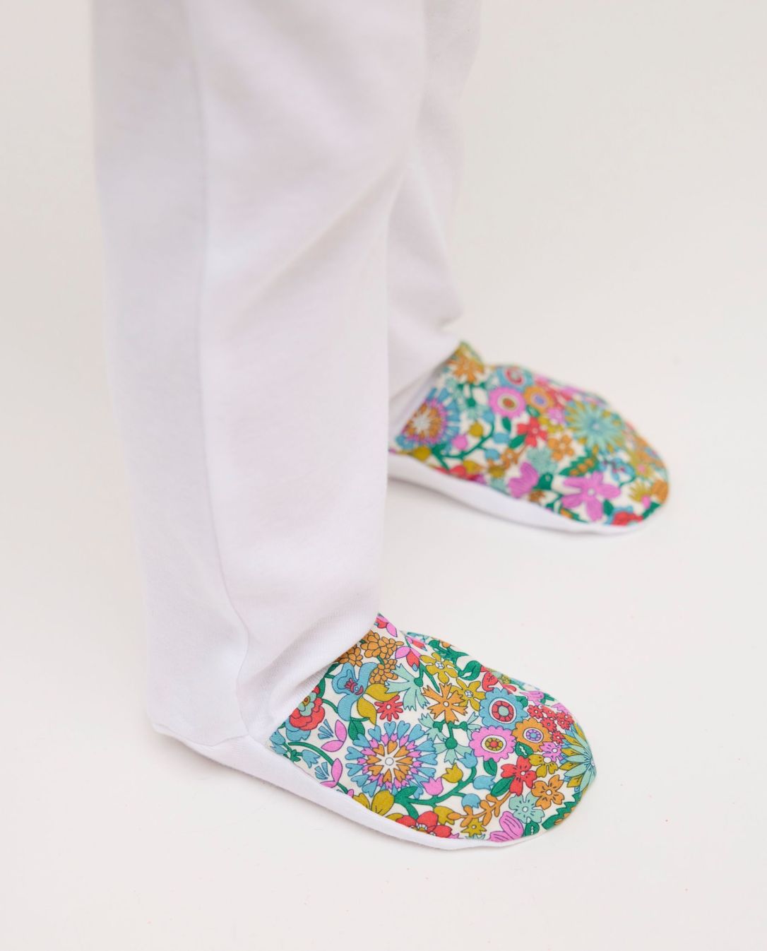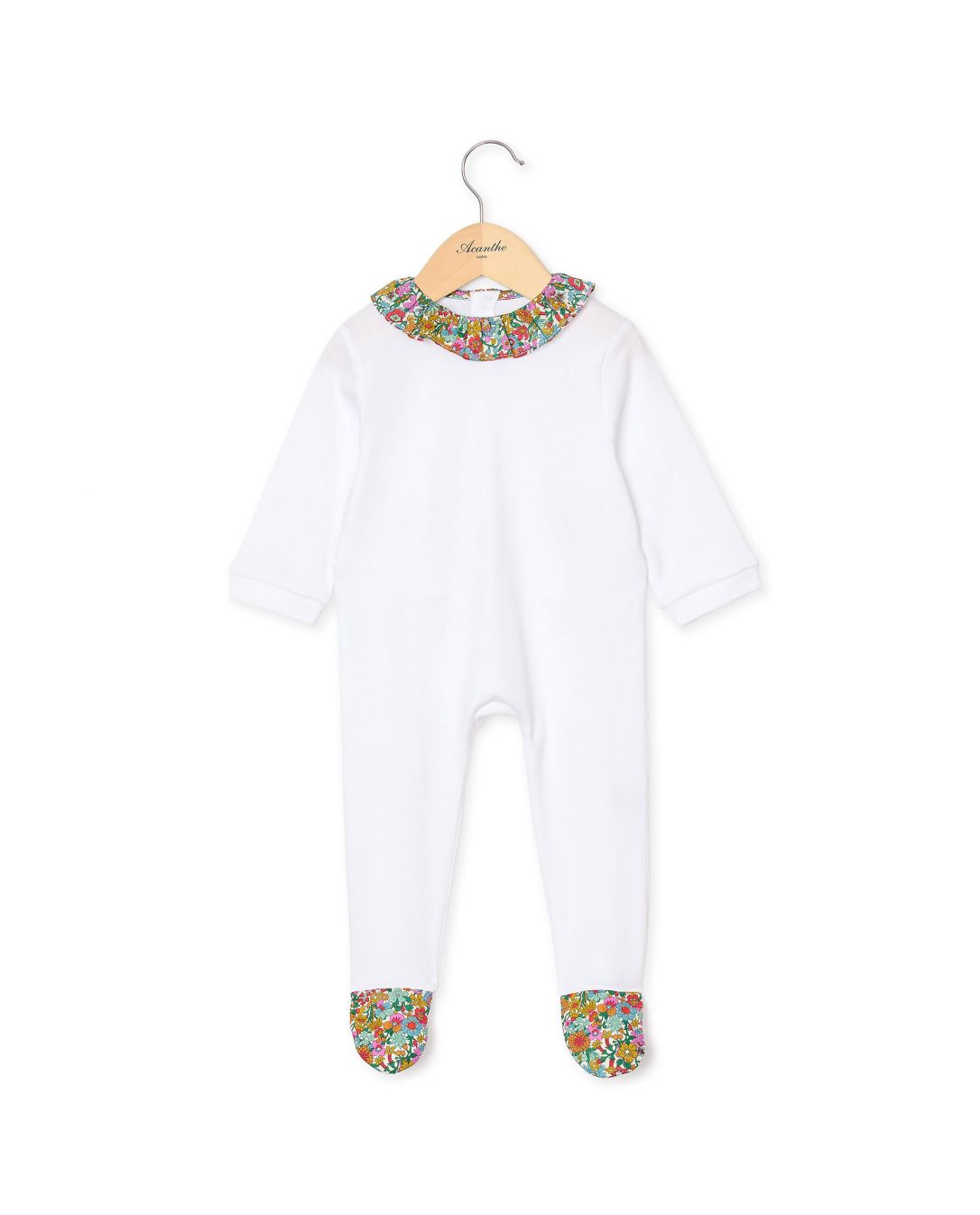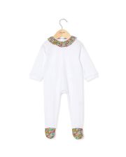 Dors bien blanc col volanté et pieds en tissu Liberty June Blossom
