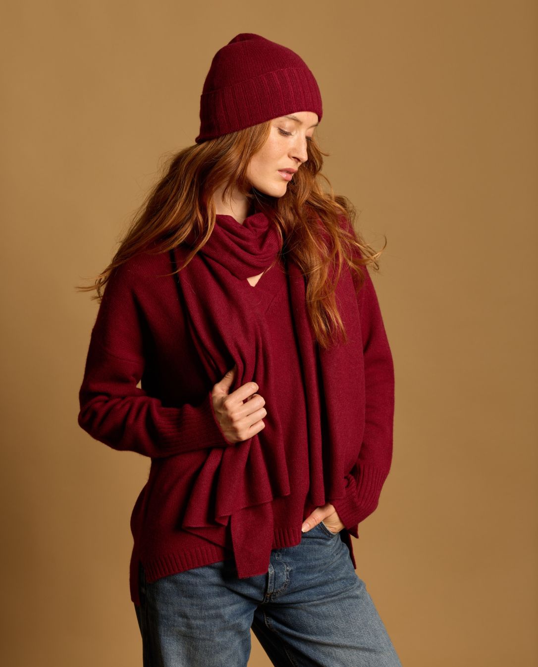 Echarpe longue et fine, maille jersey en cachemire double fil. Dimension 200 cm x 60 cm.