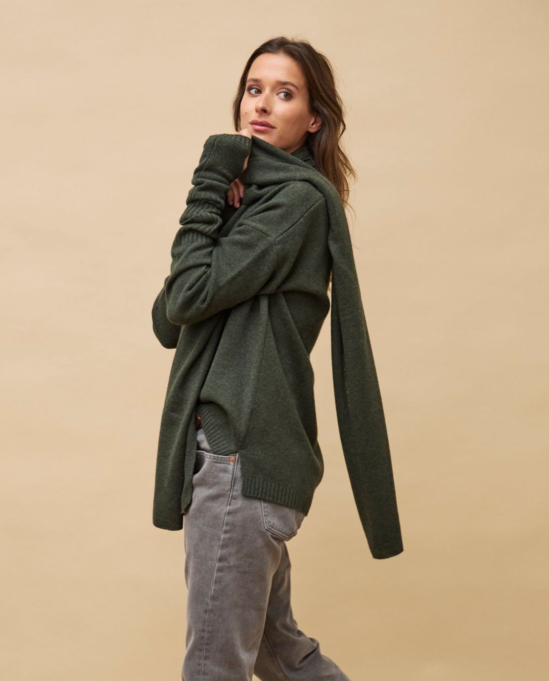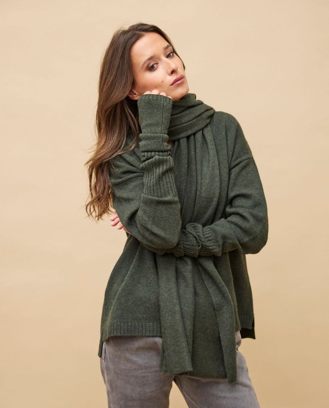 Echarpe longue kaki 100% cachemire