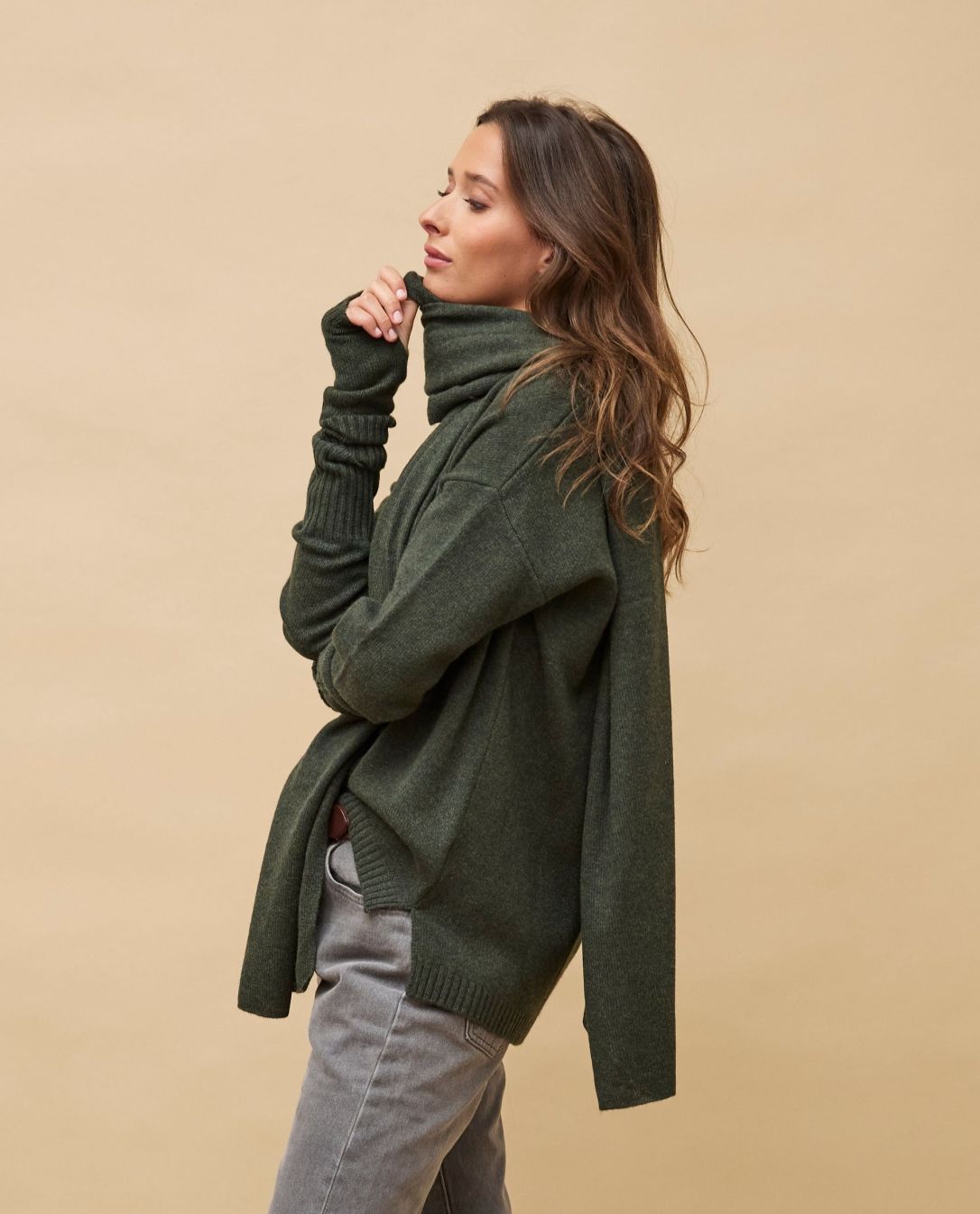 Echarpe longue kaki 100% cachemire Kaki