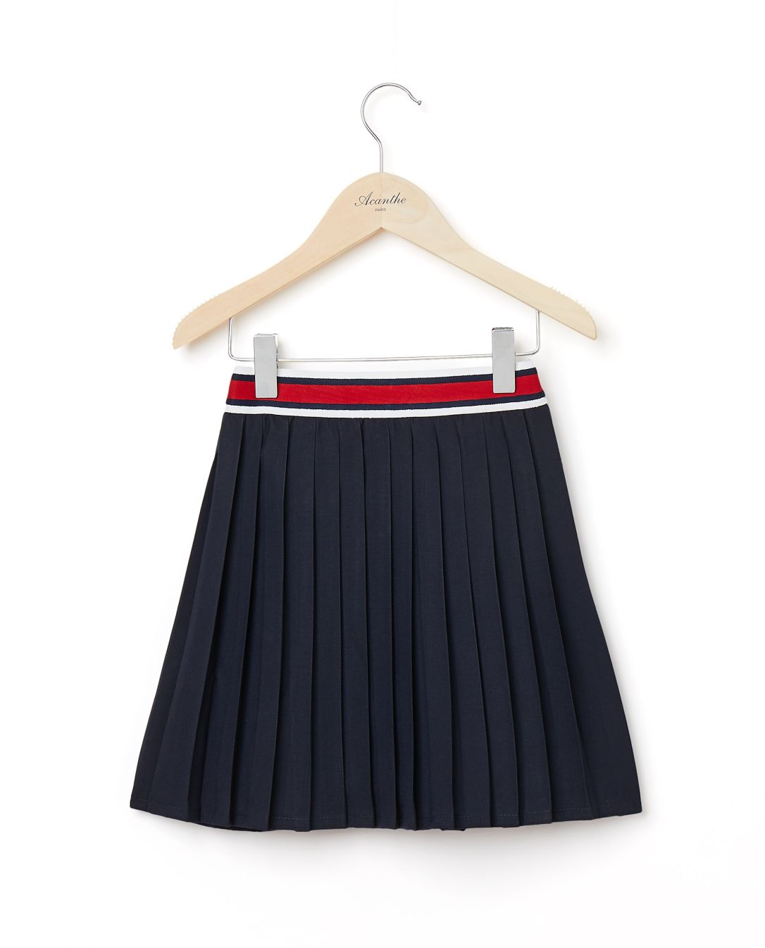 Jupe plissée avec taille élastiquée rouge/marine/blanc. Longueur de la jupe 30cm.