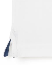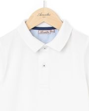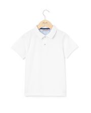 Polo garçon en maille jersey pur coton. Manches courtes. Col polo en côtes. Empiècement à l'intérieur sous l'encolure en popeline rayée. Fentes aux côtés.