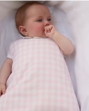 Gigoteuse sans manches. Ouatinée. Pressions aux épaules. Ouverture zippée sur le côté gauche. 100% coton.