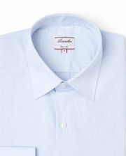 Chemise col italien. Manches longues. 2 plis souples carrure dos. Pans arrondis au bas.