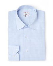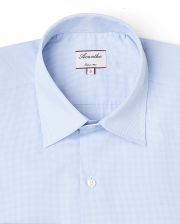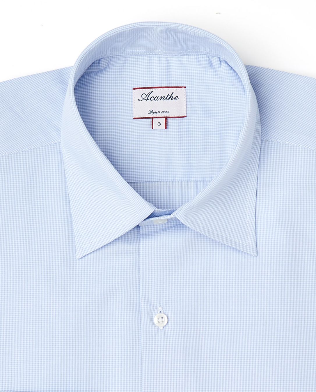 Chemise col italien. Manches longues. 2 plis souples carrure dos. Pans arrondis au bas.