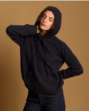 Pull à capuche en cachemire double fil. Poche au devant. Finition bord côtes. Taille unique.
