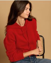 Pull à capuche en cachemire double fil. Poche au devant. Finition bord côtes. Taille unique. Longueur épaule 61 cm. Le mannequin mesure 1,77m.