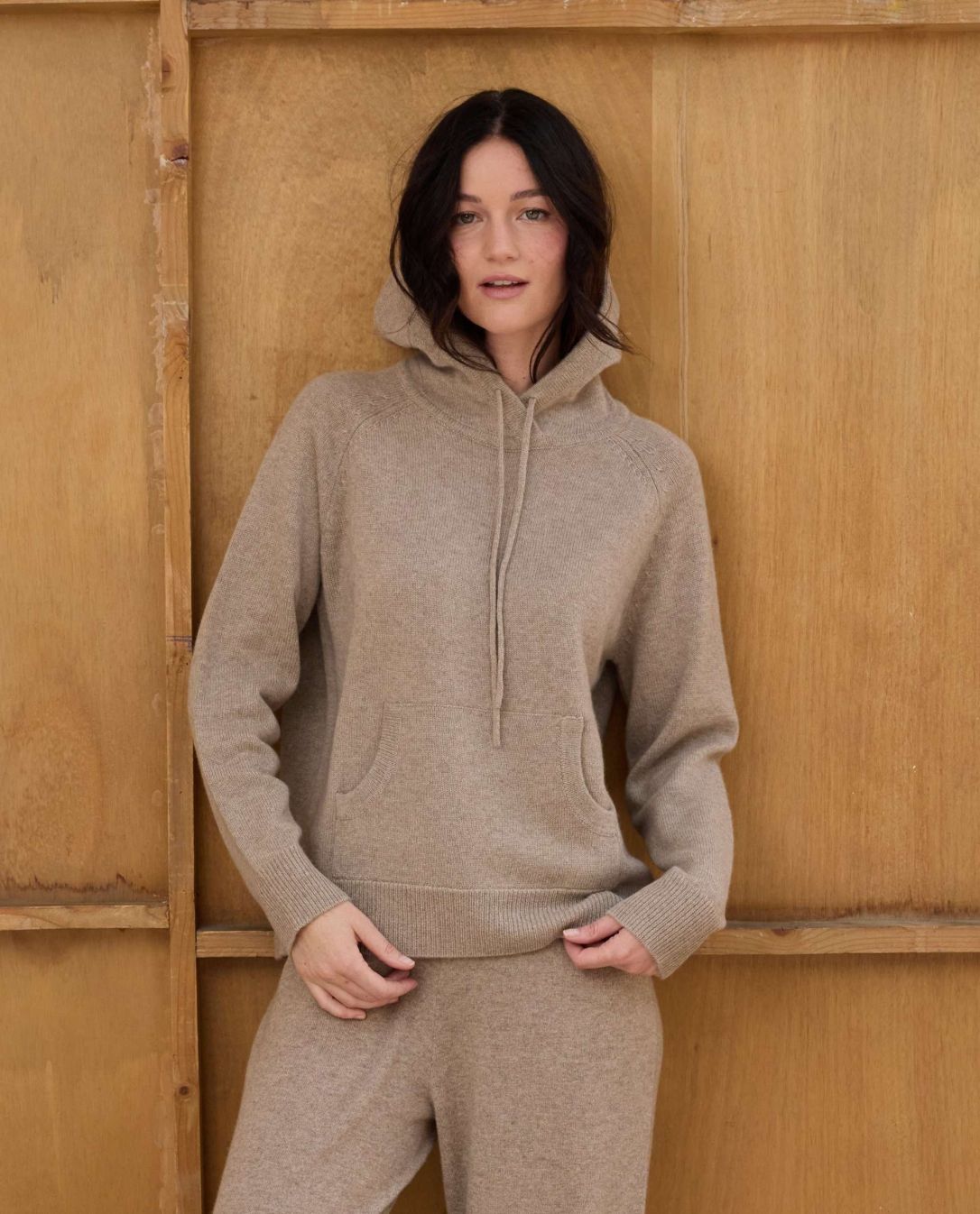 Pull à capuche en cachemire double fil. Poche au devant. Finition bord côtes. Taille unique.