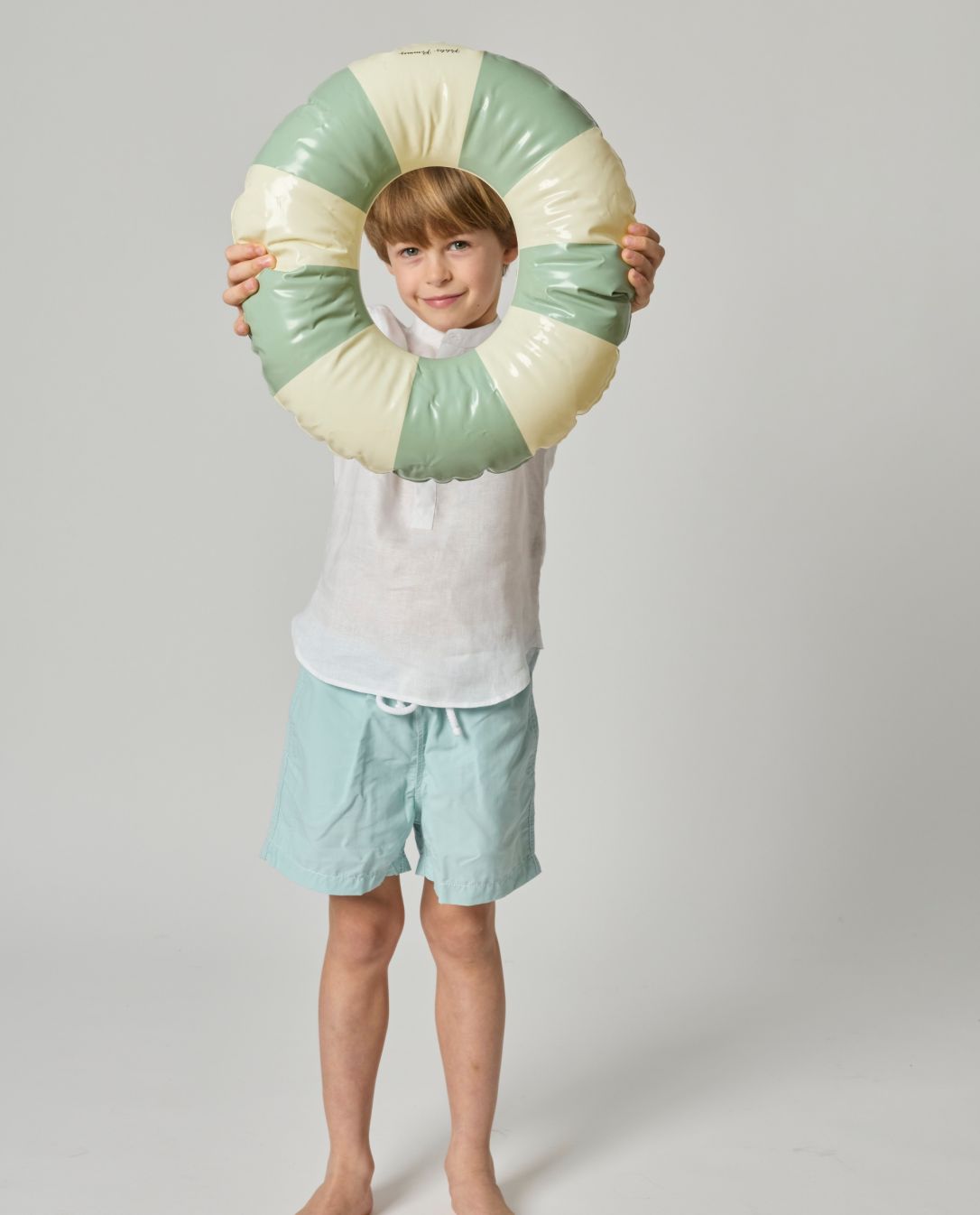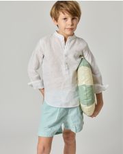 Coupe classique. Taille élastiquée avec lien coulissant. Filet à l'intérieur. Deux poches latérales. Une poche au dos avec rabat. Longueur totale 24,5 cm en taille 8 ans.