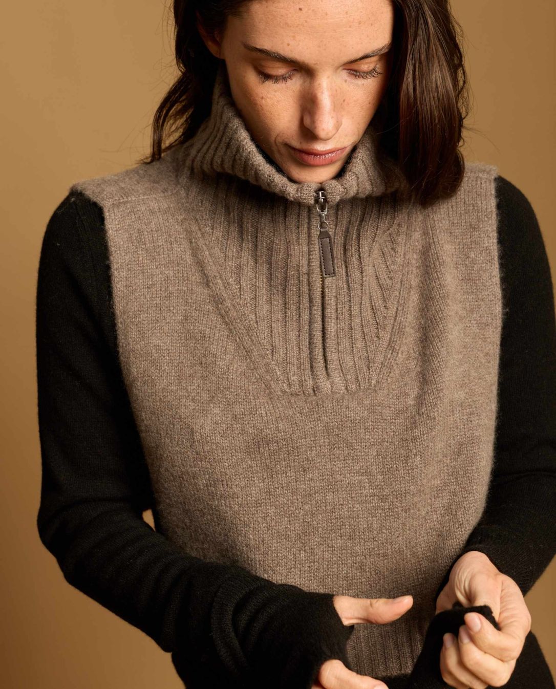 Mitaines en cachemire double fil. Taille unique. Finition bord côtes.