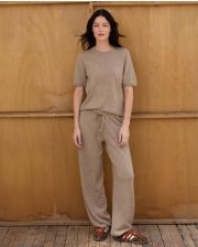 Pantalon droit en cachemire double fil. Maille jersey. Lien coulissant à la ceinture. Longueur totale 100 cm en taille 1. Le mannequin mesure 1,77m et porte une taille 1.