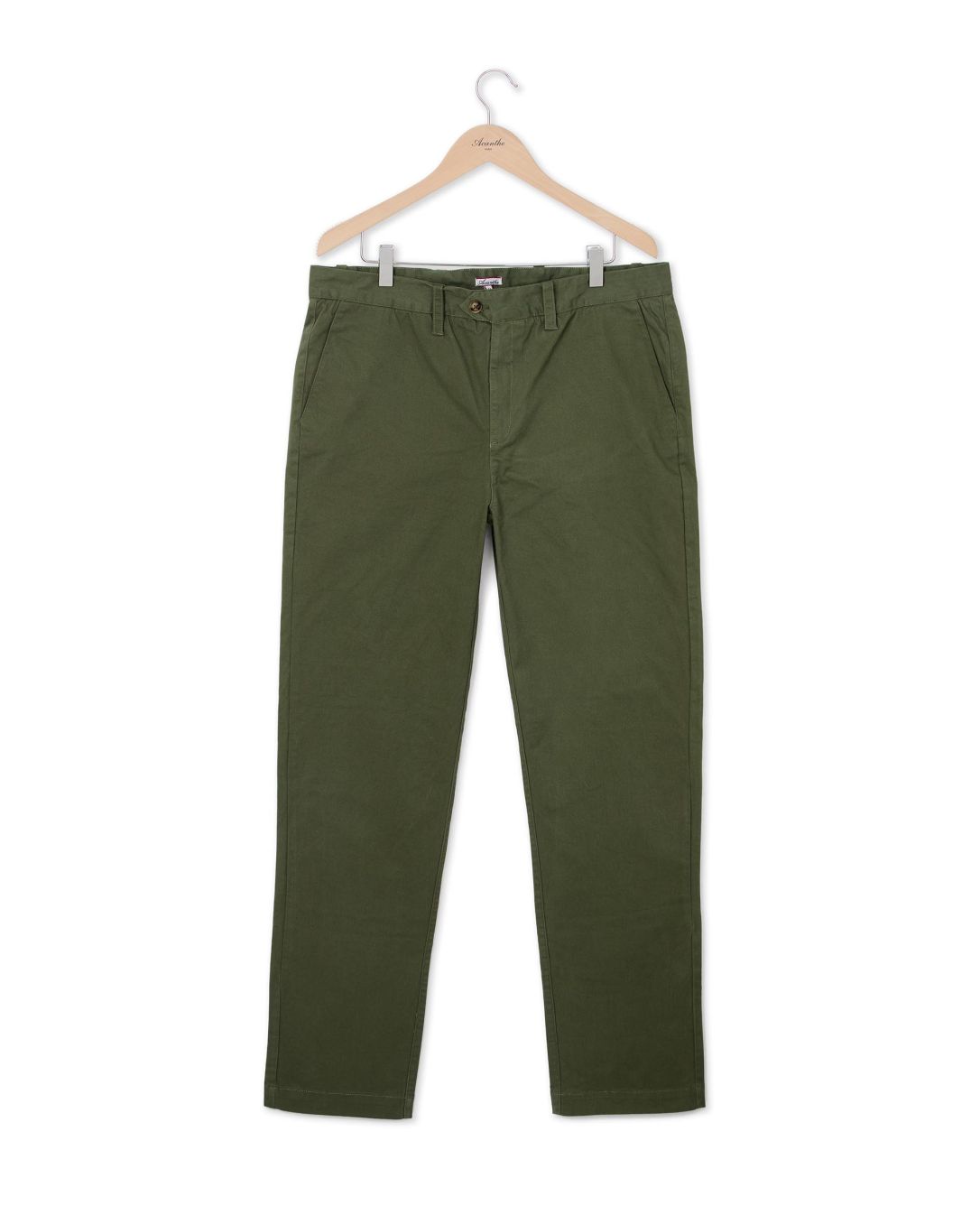 Pantalon chino twill. Monté sur ceinture à passants. Poches biais devant et poches passepoilées au dos. Braguette zippée.