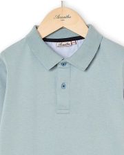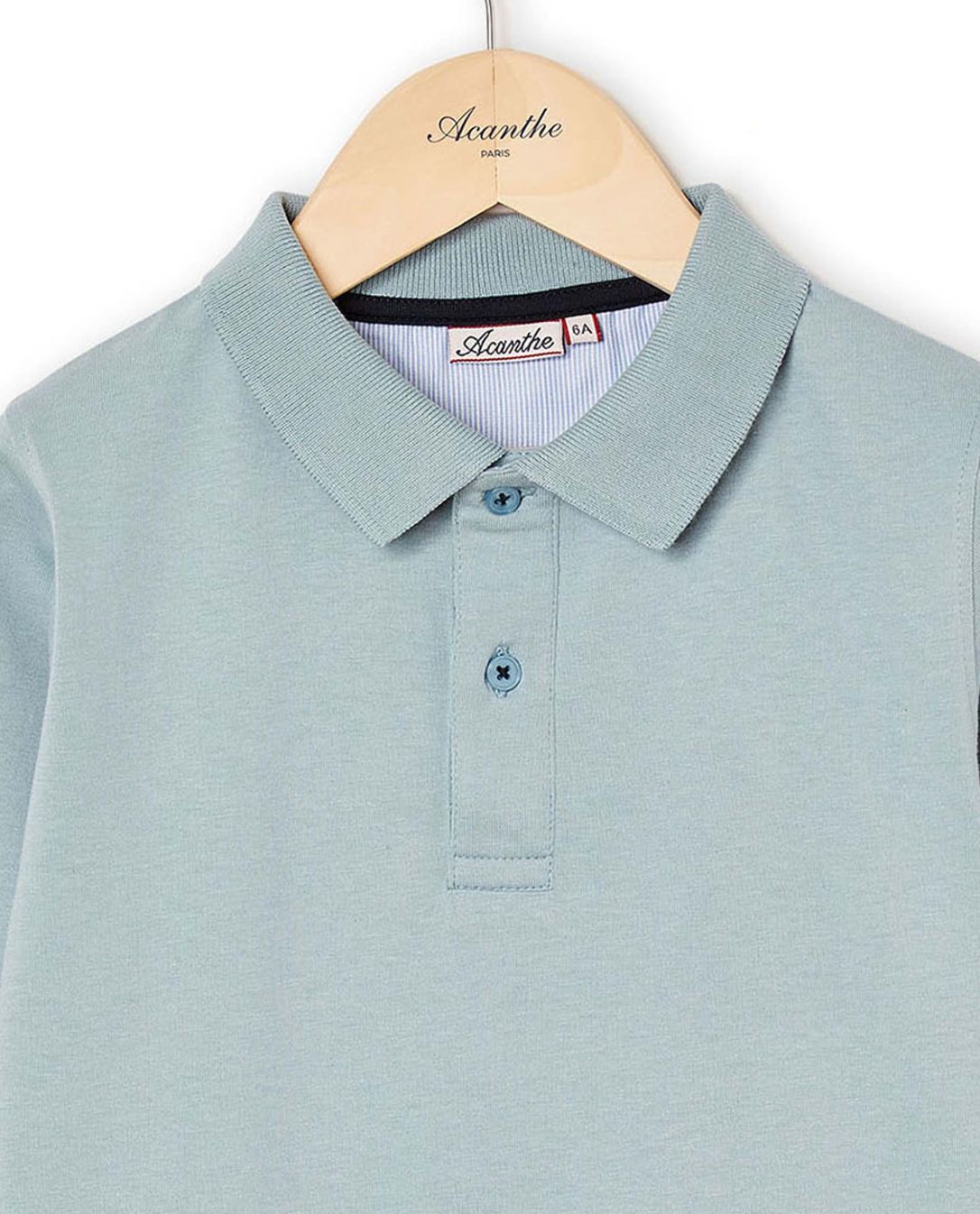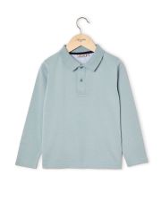 Polo en maille jersey pur coton. Manches longues. Col polo en côtes. Empiècement à l'intérieur sous l'encolure en popeline rayée. Fentes aux côtés.