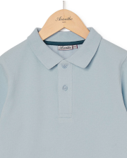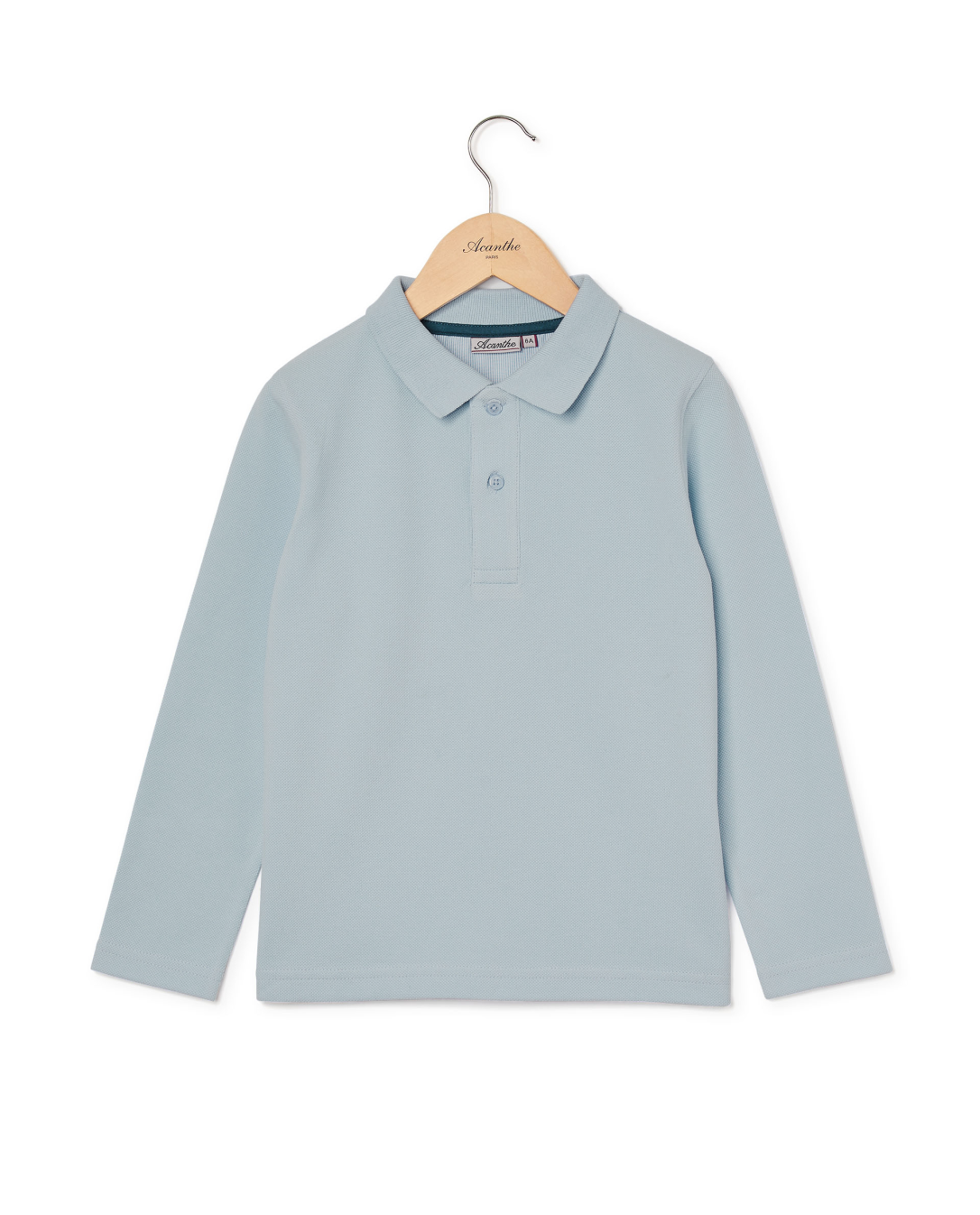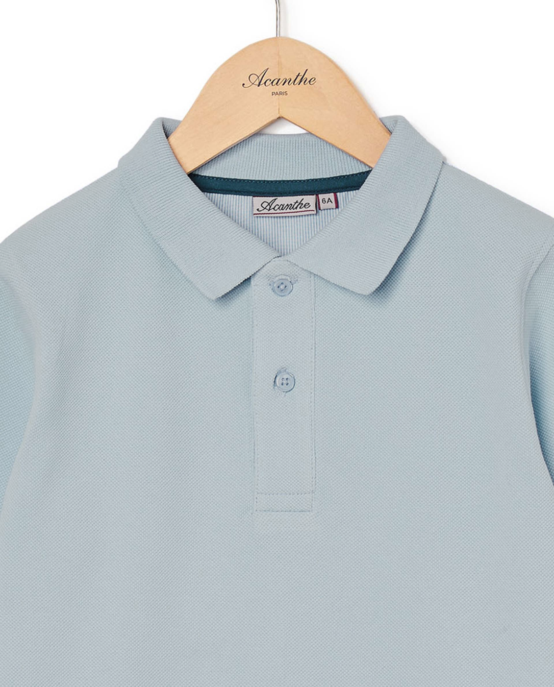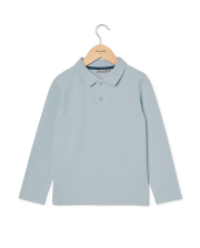 Polo en maille piquée pur coton. Manches longues. Col polo en côtes. Empiècement à l'intérieur sous l'encolure en popeline rayée. Fentes aux côtés. 100% coton.