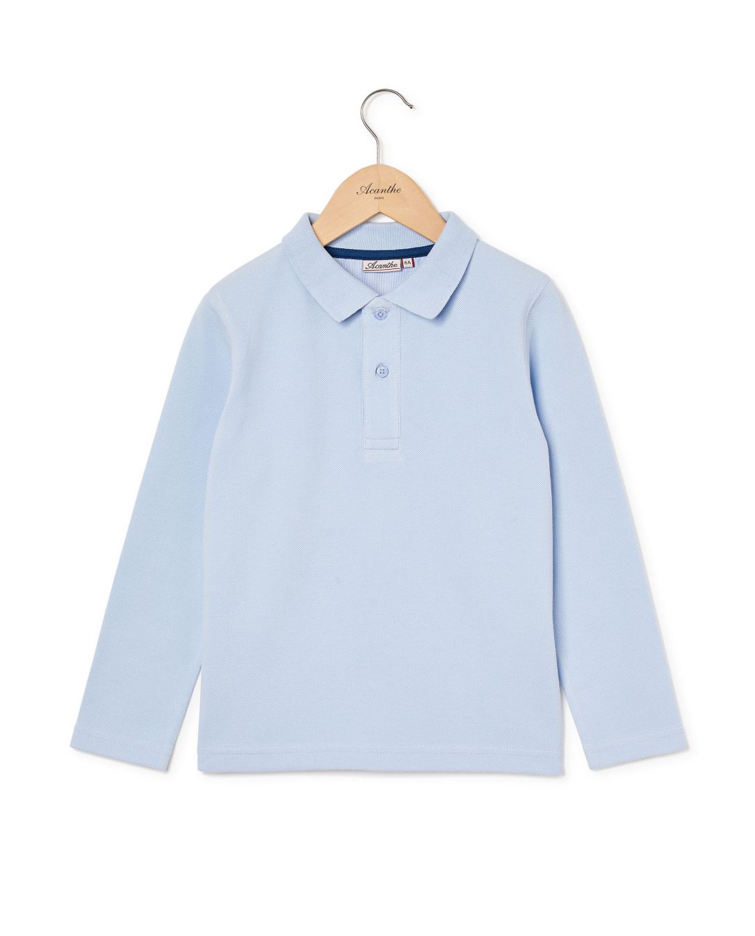 Polo en maille piquée pur coton. Manches longues. Col polo en côtes. Empiècement à l'intérieur sous l'encolure en popeline rayée. Fentes aux côtés. 100% coton.